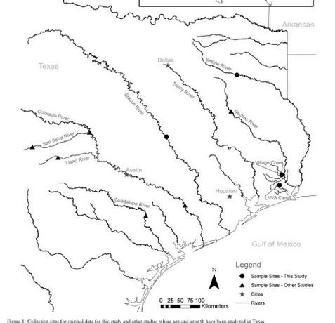 Cite: Brewer, M A , E L Grossman, and C R Randklev 2024 Clumped isotopes reveal relationship between mussel growth and river discharge Scientific Reports 14(7653)