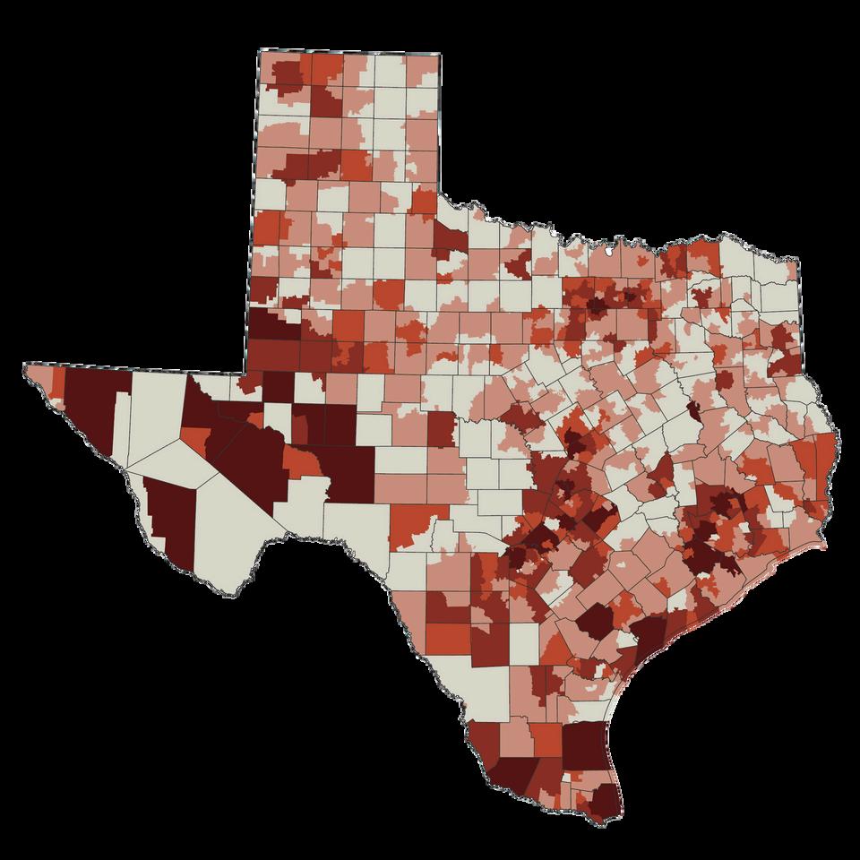 The combined population of the 25 highest growth counties in Texas (22M represented in maroon) is greater than the individual populations of every U.S. state with the exception of California.
