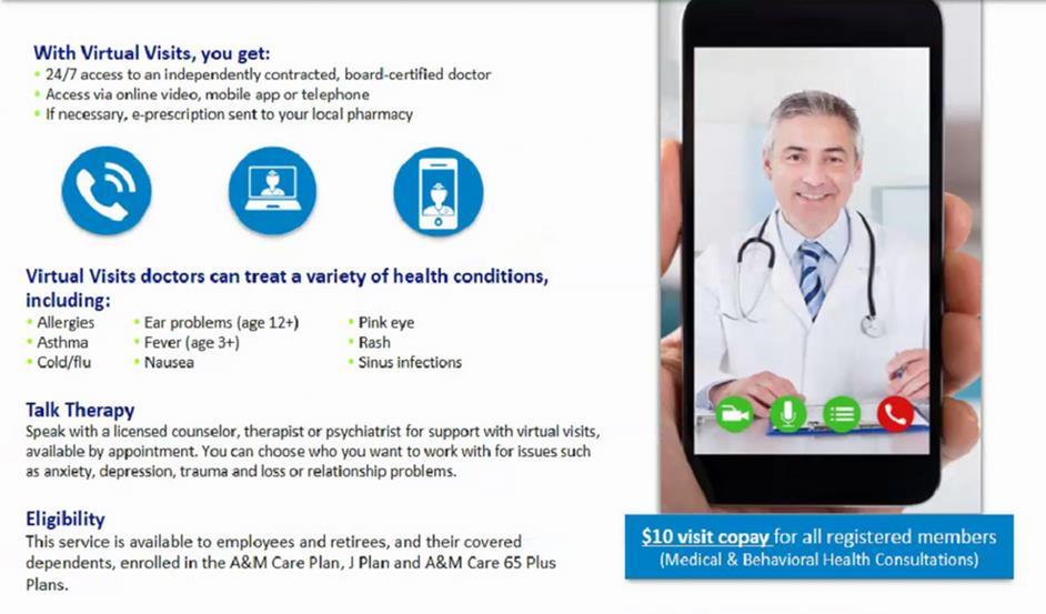 Log in to Blue Access for Members at bcbstx.com and select Behavioral Health. Must be enrolled in A&M Care Plan.