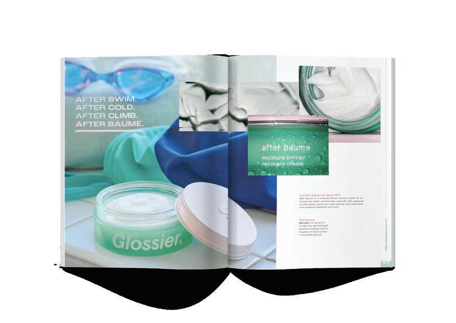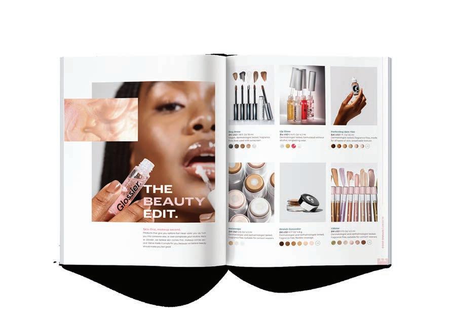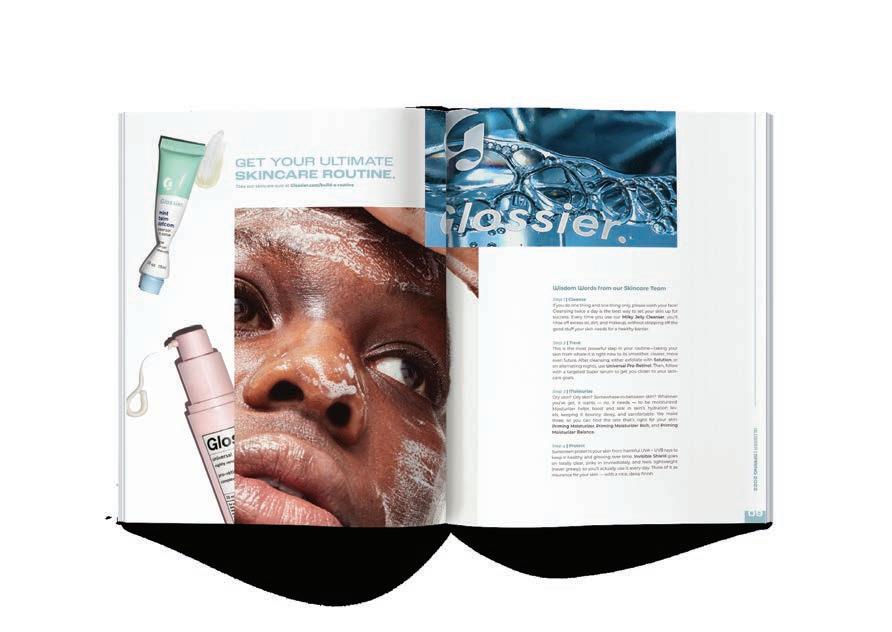The Glossier Spring catalog is a great way to reach their audience by using a medium the brand has not explored in great depth. The catalog incorporates favorite products like skincare and makeup, and includes a skincare guide. The catalog incentivizes customers to subscribe in order to get exclusive deals on their online shop.