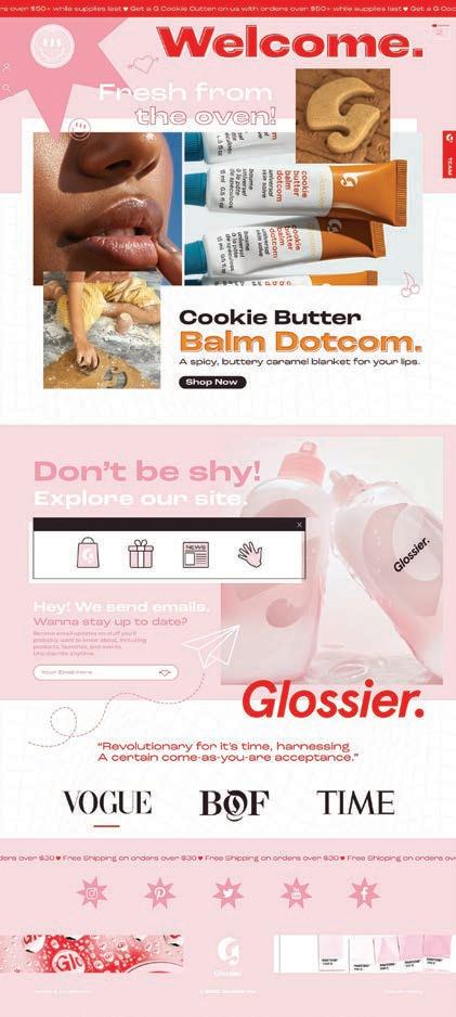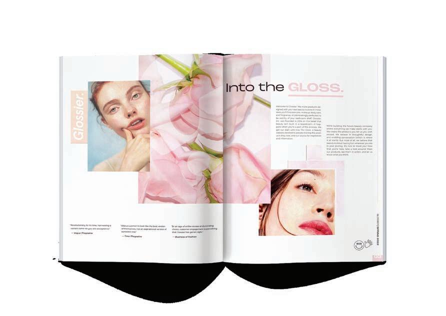 Glossier Inc. is a globally admired digital beauty ecosystem, with a primary audience of indie web surfers, ages 14-38. The brand is minimal yet bold and edgy with the perfect amount of softness. Their brand is unique, clean, and unforgettable. Glossier currently has four brick-and-mortar shops, though a large majority of their clientele purchases online. I chose this client for multiple portfolio projects in hopes of developing a standout campaign with a savvy strategy. Starting with a website redesign created in Adobe XD, followed by a 20-page spring catalog, and two print ads for the brand.