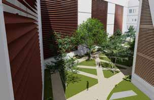 Co-living blocks integrated near residential blocks, away from main road, to foster community and modern living.