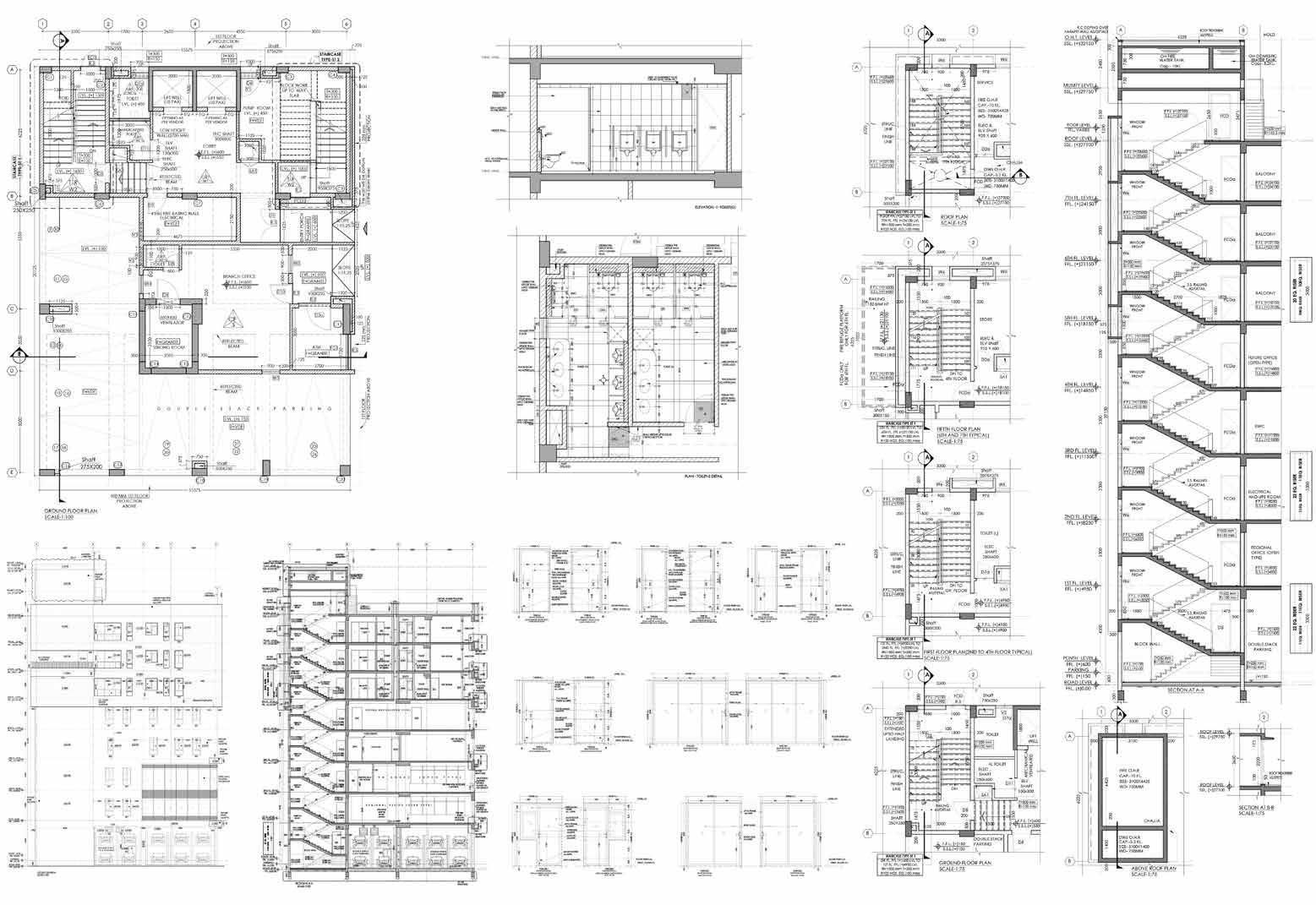 FIRST AND EVEN FLOOR PLAN - COLIVING BLOCK TYPICAL FLAT/ APARTMENT PLAN - COLIVING BLOCK SECTION - 1 SECTION - 2 GROUND FLOOR PLAN - COLIVING BLOCK ODD FLOOR PLAN - COLIVING BLOCK (EXCEPT FIRST FL.) ISOMETRIC VIEW OF FLAT