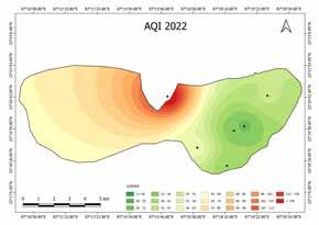 48.44 25.99 37.55 85.08 97.54 39.98 23.02 24.73 49.52 38.05 0.00 30.56 52.17 57.17 50.32 32.45 19.33 32.67 43.35 29.32 26.17 16.72 24.19 43.92 48.31 0 20 40 60 80 100 June July August September October AQI Monthly mean AQI distribution (June - October) Talbagicha Hijli Bus station Primary school Hospital Good AQI 2018 2021 2022 2028