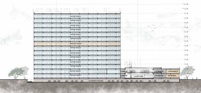 14 UP UP LIFT LOBBY LIFT LOBBY RAMP UP TO LEVEL (1:6) 1 2 3 4 5 6 7 8 9 10 11 12 13 14 15 16 A B C D E F G H 0 50M 20M 10M 151 152 154 155 156 158 159 161 162 163 164 165 166 169 170 171 172 173 174 184 185 187 188 189 191 192 194 195 196 197 198 199 202 203 204 205 206 207 217 218 220 221 222 224 225 227 228 229 230 231 232 235 236 237 238 239 240 253 254 256 257 258 260 261 263 264 265 266 267 268 271 272 273 274 275 276 242 244 278 280 245 246 281 282 247 283 178 211 299 300 307 308 250 251 287 288 298 306 181 182 214 215 179 180 212 213 293 294 301 302 176 209 248 249 284 285 286 290 292 324 322 320 318 316 312 310 309 150 75 146 71 144 69 142 67 140 65 138 63 134 59 132 57 128 53 126 51 122 47 120 45 116 41 114 39 110 35 108 33 106 31 104 29 100 25 96 21 94 19 90 15 88 13 84 82 78 76 13 14 16 17 18 19 22 23 24 32 33 34 36 37 38 39 10 25 30 35 42 40 289 321 319 317 313 311 326 5M WIDE DRIVEWAY 5M WIDE DRIVEWAY 6M WIDE DRIVEWAY 5M WIDE DRIVEWAY 5M WIDE DRIVEWAY 5M WIDE DRIVEWAY 6M WIDE DRIVEWAY 6M WIDE DRIVEWAY RAMP UP TO LEVEL (1:6) GROUND LVL GROUND LVL FFL -2250 C C' D D' E E' B' SECURITY CHECK A A' TOI(L) TOI(G) TOI(L) TOI(G) 1 10 11 12 13 14 15 16 A B C D E G H J OFFCIE SPACE LIFT LOBBY LIFT LOBBY LIFT LOBBY GRAND HALL CONFERENCE CONFERENCE 240 sqm. 240 sqm. SURVEILANCE ROOM 110 sqm. STORE ROOM 78 sqm ADMINISTRATION ADMINISTRATION EXHIBITION 240 sqm. SMALL HALL SMALL HALL UP DN UP DN DN DN 4M WIDE CORRIDOR 4MWIDE CORRIDOR 0 50M 20M 10M FFL +5250 SSL +5200 FFL +5250 LIFT LOBBY C' D D' E' A A' B' 30000X63875 OFFICE SPACE (MEETING/DISCUSSION ROOM) AHU OFFICE SPACE (MANAGER/ DIRECTOR ROOM) 7925X5325 8075X8200 8125X3925 18000X21500 6375X3875 19250X11800 19250X11800 11425X11775 TOI(L) TOI(G) 4 10 A B C D E F G LIFT LOBBY DN UP DN 0 50M 20M 10M C C' OFFICE SPACE (MEETING/DISCUSSION ROOM) (MANAGER/ DIRECTOR ROOM) 7925X5325 8075X8200 12200X9390 30000X75815 TOI(L) TOI(G) 2 3 4 5 6 7 8 9 10 A C D E F G LIFT LOBBY LIFT LOBBY DORMETORY INDOOR GAMES DN KITCHEN COUNTER SLOPE SLOPE GREEN 0 50M 20M 10M SSL +57850 7925X5325 8075X8200 7925X5325 36 MM THK POWDER COATED ALUMIIUM PANEL METAL HOLDER 300 TYPICAL TYPICAL TYPICAL 450X750 BEAM FALSE CEILING HEAT STRENGTHEN GLASS @63MM FRONT ELEVATION SIDE ELEVATION BASEMENT PARKING PLAN GROUND FLOOR PLAN DIFFERENT OPTIONS FOR OFFICE SPACES ONE OFFICE (3000 SQM.) TWO OFFICE (1500 SQM. EACH) THREE OFFICE(1000 SQM. EACH) The site gets 8 hrs (8a.m. to 4p.m.) of direct normal solar radiation. Total no of solar p.v. installed 143 Power generation capacity of each b.i.p.v. 300 watt. Total solar power generation each day (143 x 300 x 8) = 343.2kw. TYPICAL FLOOR PLAN ROOF PLAN ABOVE ROOF PLAN TANK (8000X8000) 750MM ROOM DN UP LIFT MACHINE 2 3 4 5 6 7 8 9 10 B C D E G BIPV (300W EACH) BIPV (300W EACH) BIPV (300W EACH) STAIRCASE MACHINE STAIRCASE PRESSURIZATION MACHINE 0 50M 20M 10M FFL +61950 C' A A' 7925X5325 LIGHTING ARRESTER 10 0 50M 20M 10M (MANAGER/ 10 G 50M 20M 10M (MANAGER/ 10 50M 20M 10M (MANAGER/