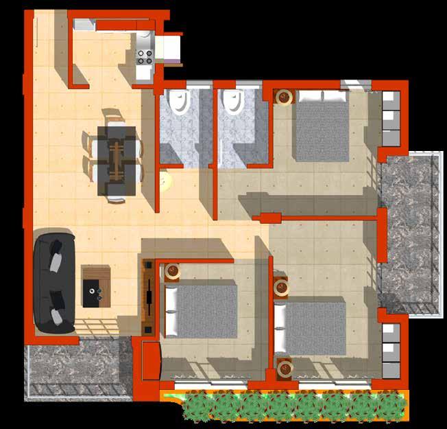 Each block comprises four 3 BHK unit flat of 120 sq.m. each with combined living dining and one master bedroom.