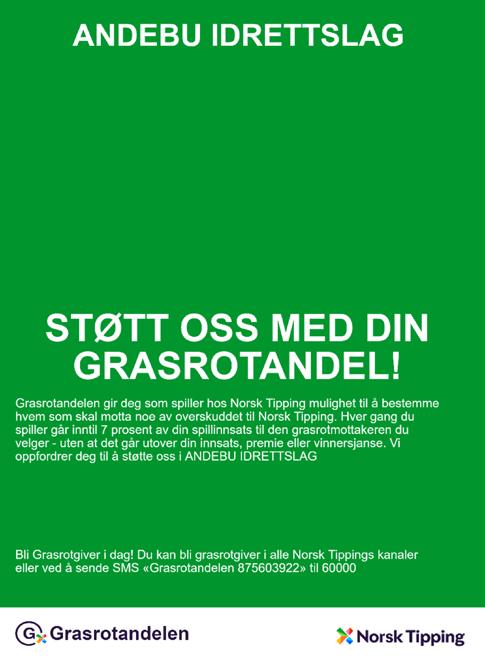 I likhet med lederens avslutning vil jeg ønske lykke til med en ny sesong til alle. Særlig til våre unge utøvere som er Andebus beste reklame gjennom god sportsånd, fair play og en måte å være på som gjør at vi føler stolthet over å tilhøre Vestfold beste nærmiljøklubb. Og ikke minst; en stor takk og lykke til til alle dere foresatte og andre som bidrar til at Andebu Idrettslag er den gamle kommunenes desidert største frivillige organisasjon.