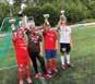 Til høyre leder for barneidretten, Camilla Mørken, også damespiller i fotball med døtrene Tiril Mørken Erga (minst) og Mathea Mørken Erga som begge er med på barne-/ allidretten.