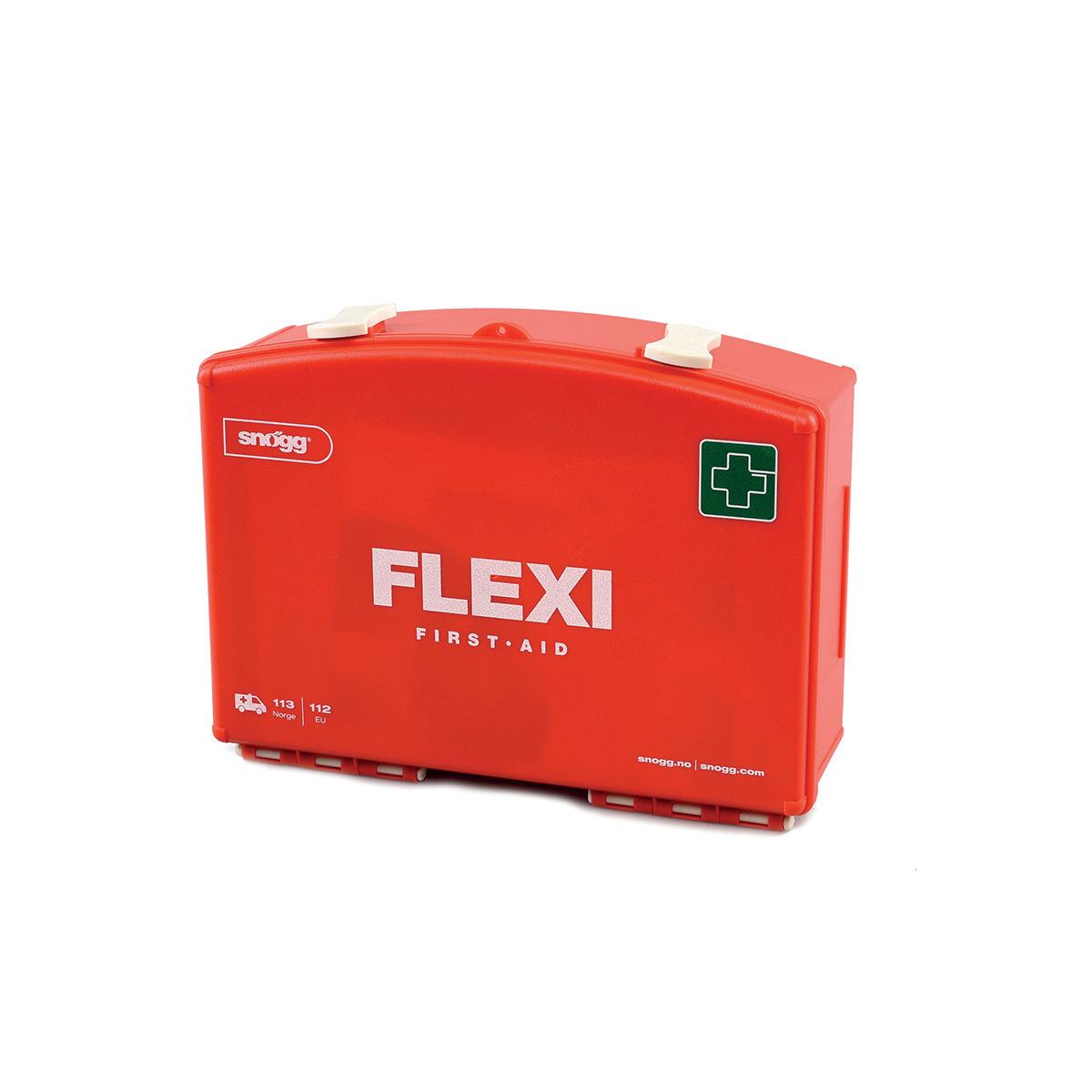 Kofferten er robust og innholdet dekker minimumskravet til førstehjelpsutstyr på mindre arbeidsplasser.