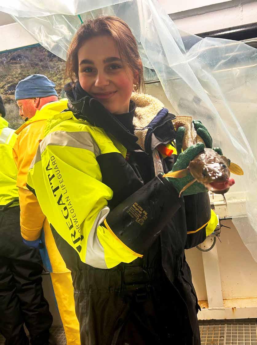 – Dette er et yrke som passer godt for meg, det er jeg helt sikker på. Jeg lærer noe hele tiden, og gleder meg til å bli ferdig med studiene. Jeg er sikker på at jeg kommer til å søke meg jobb på en servicebåt eller brønnbåt når skolen er ferdig. Det er innen havbruk jeg ser fremtiden min, sier 16-åringen etter en lang dag på sjøen.