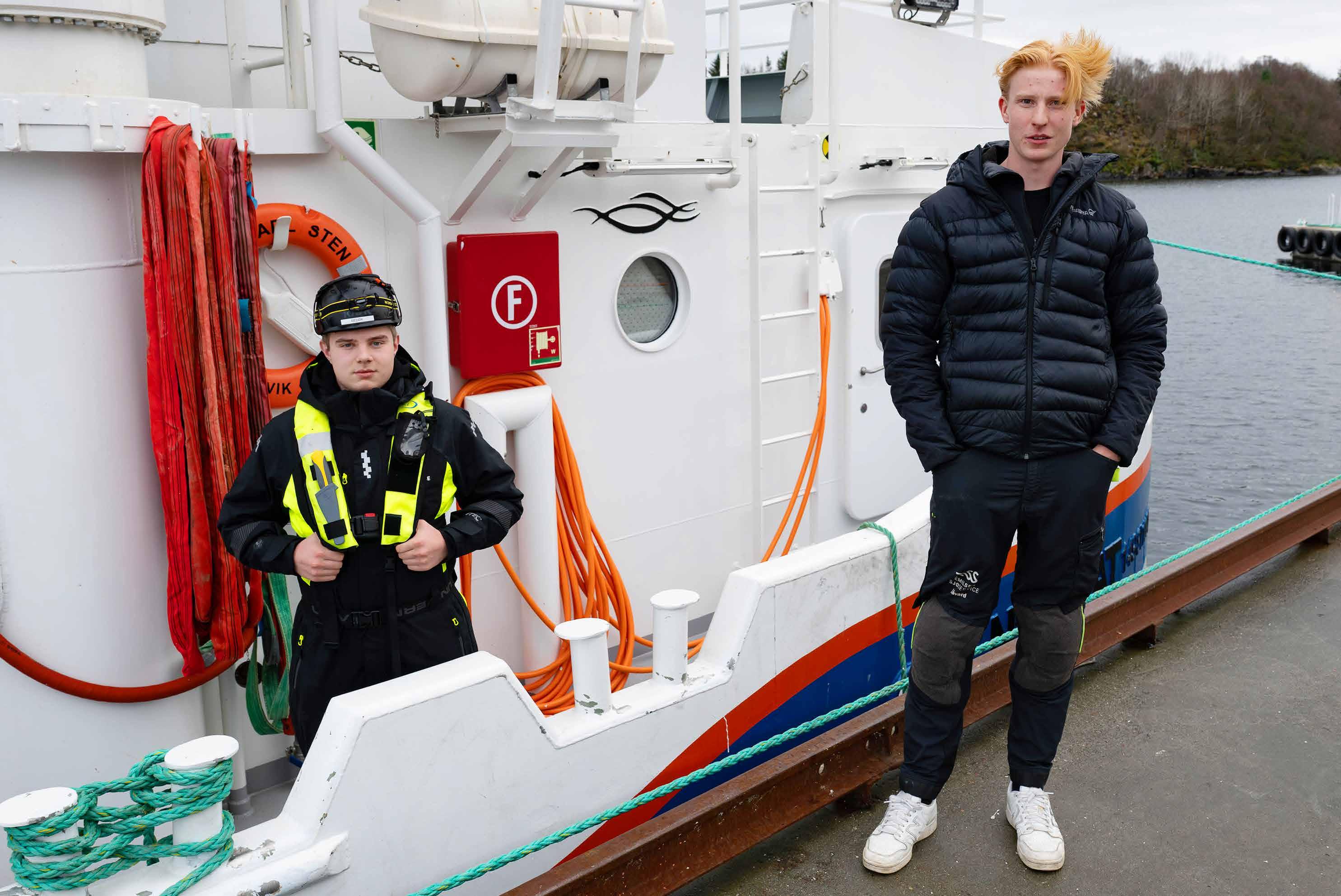 RØRVIK: Sørvesten frisker på og lager små skumtopper på Follafjorden i Nærøysund kommune. Det er her ute Magnus og Victor har funnet sine drømmejobber. Om bord i ROV-fartøyet «Ada» sørger de for at operasjonene til Emilsen-konsernet går etter planen.