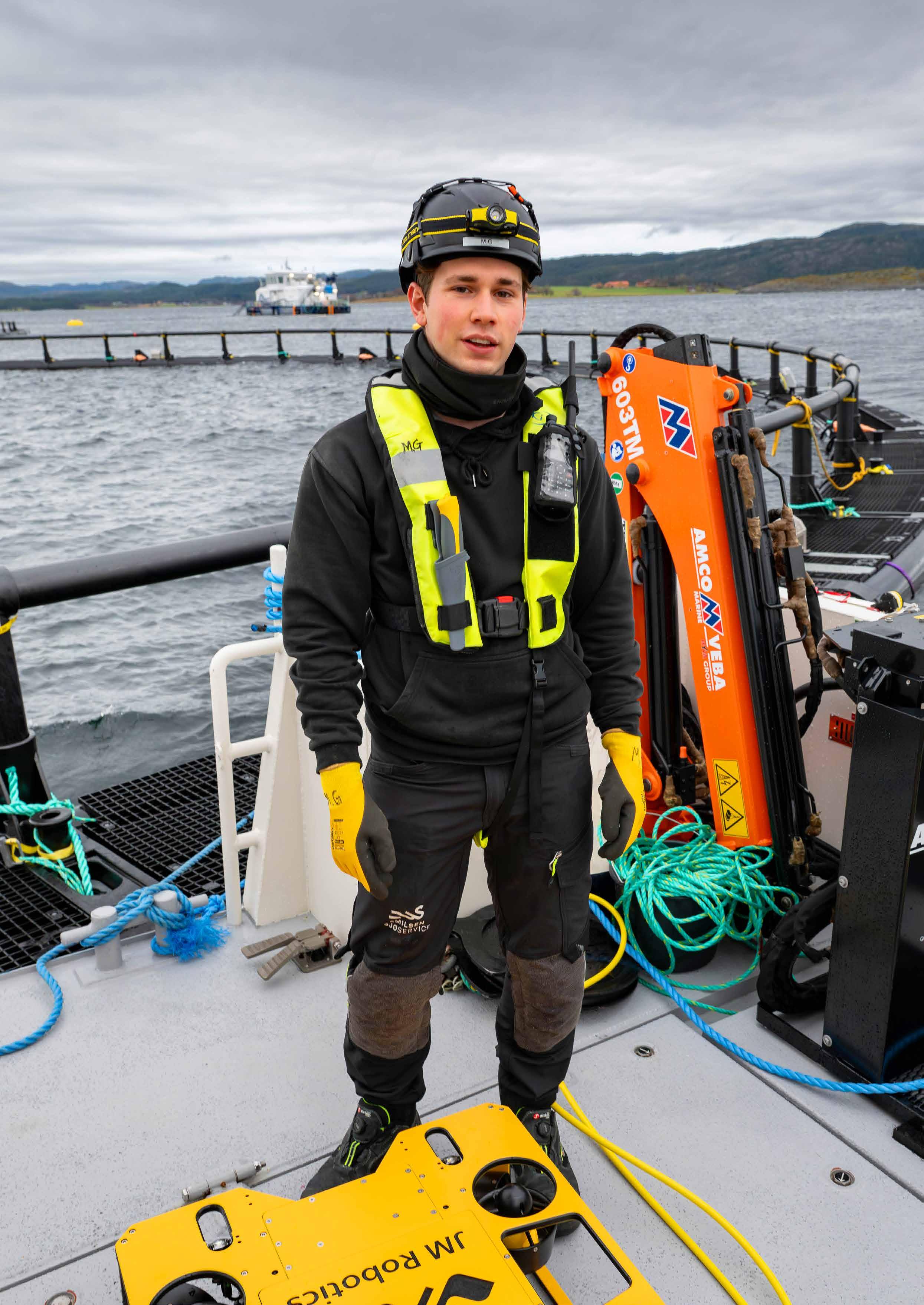 – Av og til savner jeg å være snekker, men jeg kommer nok ikke til å bli det igjen. Det er spennende å kunne jobbe med undervannsroboter, se hva som rører seg nede på dypet og være en del av en stor operasjon. Denne bransjen har behov for folk, og kan tilby varierte, meningsfulle, utfordrende og spennende oppgaver. Jeg har ingen problemer med å anbefale alle en jobb i havbruket. Vi trenger også flere jenter i dette yrket, sier Victor.