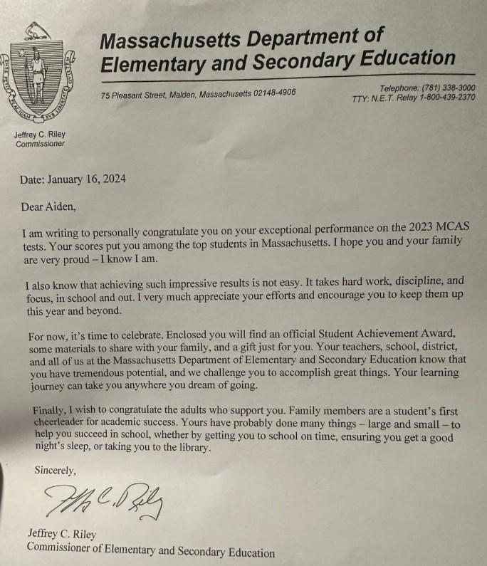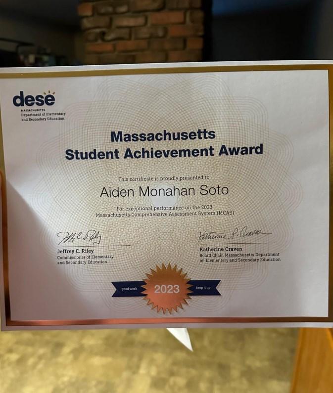 Congratulations to Aiden Soto who was awarded for having one of the top MCAS scores in Massachusetts. This was for 2023 which he was in 3rd grade, and it was his first-time taking the MCAS. His principle called to let his mom know he was given an award and a gift card. Aiden is on the spectrum and has had some delays and was nonverbal until about age 4. To see how bright he is and how far he's come is incredible.