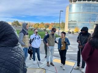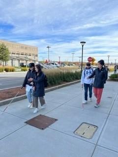 Students in a visually impaired workshop and exercise, part of the injury prevention clerkship.