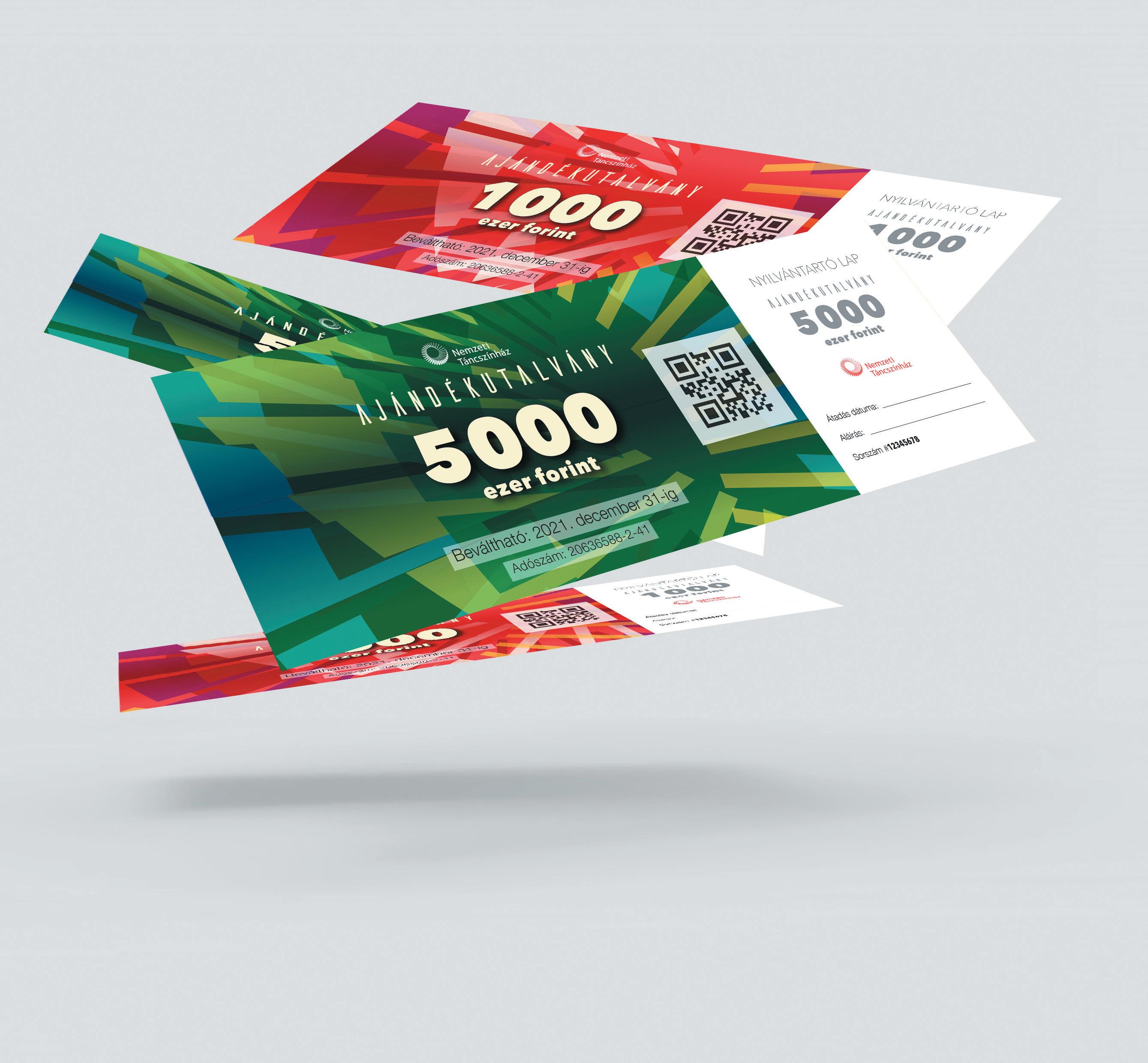 A Nemzeti Táncszínház ajándékutalványai előre meghatározott, 1000 Ft és 5000 Ft os címletben kaphatók.
