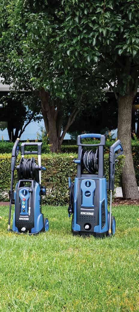 2 $179 $399 2175PSI 2000W High-Pressure Washer > 7.8 Litres/min Maximum Flow Rate > 8M x 11.8mm PVC High Pressure Hose > Long Lasting Aluminium Pump > Turbo Nozzle & Adjustable Fan Nozzle included > Onboard Soap Dispenser -1L Capacity > Twist & Lock accessory system > 2000W Carbon Brush Motor K16251 2400PSI 2100W Compact High-Pressure Washer > 7.2 Litres/min Maximum Flow Rate > 8M x 11.8mm PVC High Pressure Hose > Long Lasting Aluminium Pump > Turbo Nozzle & 0°, 25°, 40° QuickConnect Nozzles Included > Soap dispenser attachment included - 400ml > Quick-connect accessory system > 2100W Induction Motor K16253 2600PSI 2400W High-Pressure Washer > 8.0 Litres/min Maximum Flow Rate > 8M x 11.8mm PVC High Pressure Hose & Reel > Long Lasting Aluminium Pump > Turbo Nozzle & Adjustable Fan Nozzle included > Twist & Lock accessory system > Onboard Soap Dispenser -1L Capacity > 2400W Carbon Brush Motor K16252K16252 1520PSI 1400W Pressure Washer > 6.8 Litres/min Maximum Flow Rate > 8M x 10mm PVC High Pressure Hose > Long Lasting Aluminium Pump > Turbo Nozzle & Adjustable Fan Nozzle included > Soap Dispenser Attachment Included - 400ml > Twist & Lock Accessory System > 1400W Carbon Brush Motor K16250 $299 $349 HIGH PERFORMANCE UNDER PRESSURE Kincrome’s new electric high-pressure washer range presents a versatile solution tailored for both home DIYers and professionals. The lineup features six distinct units, offering users a choice between models with power ratings ranging from 1400W to 2400W. This diverse range ensures suitability for a broad spectrum of cleaning tasks, whether it be for domestic projects or professional cleaning endeavors. The electric pressure washers stand out for their efficiency and robust power delivery, making them an effective solution for a variety of cleaning applications.