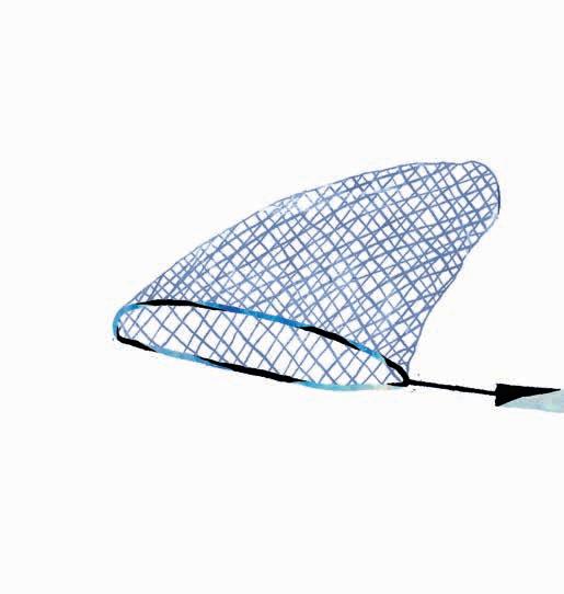 tes tanden fra kinden til øjet, hvor den fastgøres. Slimhinden trækkes ned, og plastikcylinderen danner en kanal, patienten kan se igennem.