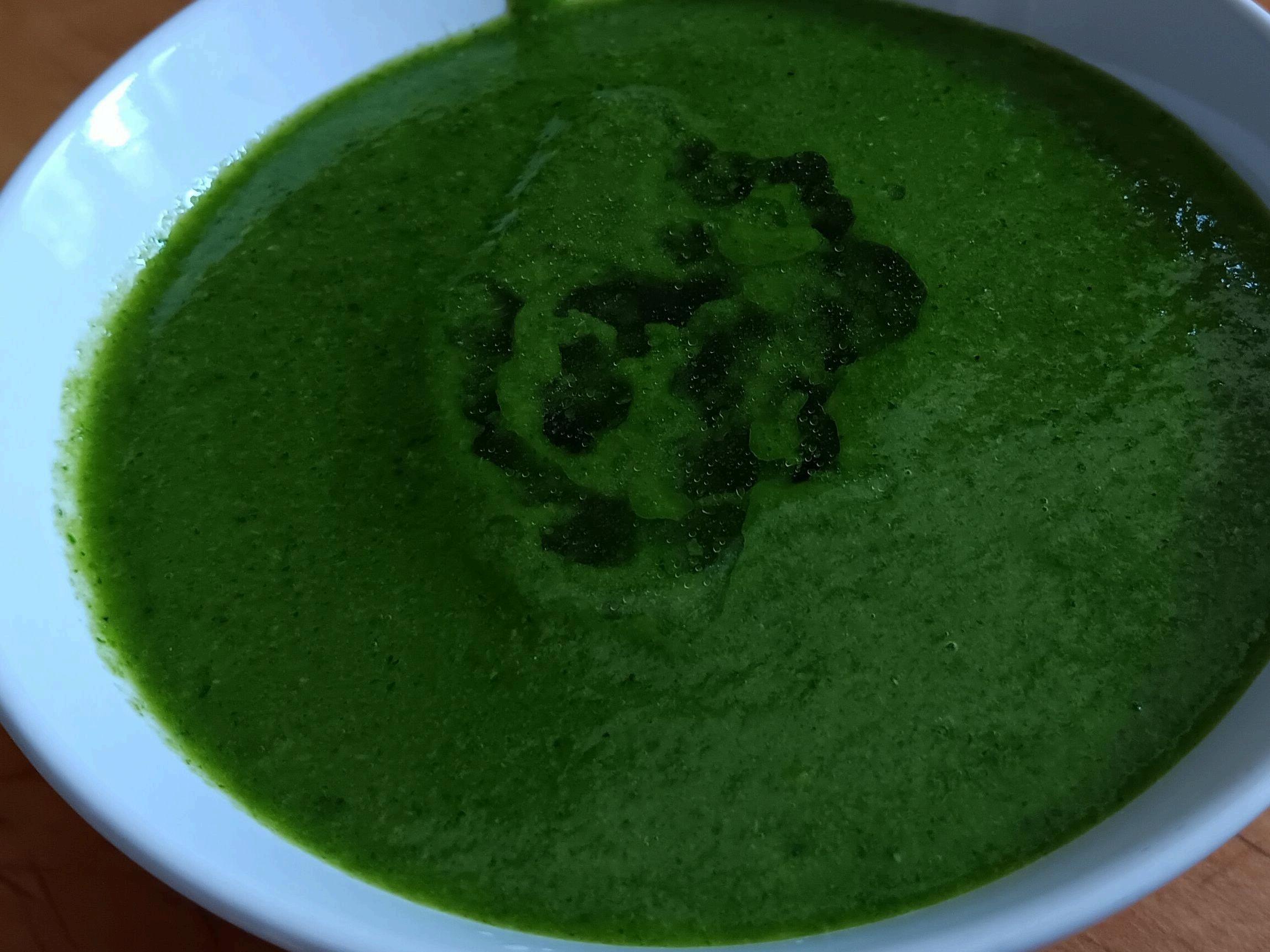 Then add grape seed oil and blend till smooth.After blending, I add a dash of white wine vinegar and it's ready. I store it in an air tight container in the fridge, or you could freeze it like pesto for later use.