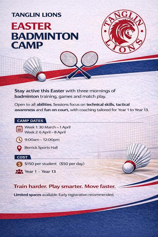 All sessions will continue in Berrick Sports Hall. Fees are calculated at $35 per session. Sessions will begin in Week 1 of Term 3.