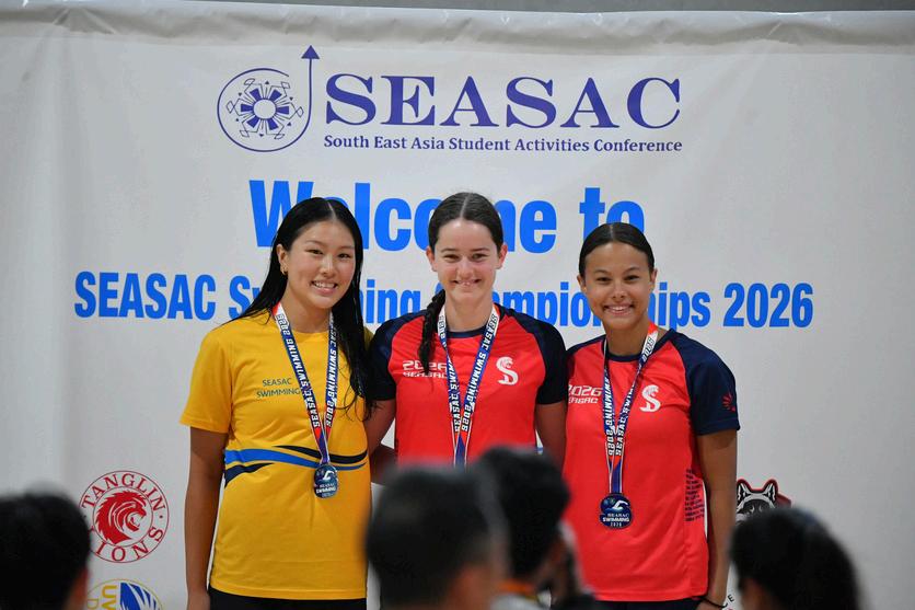 There were also memorable breakthrough moments. Casha and Naya captured their first SEASAC gold medals, while Natasha secured her first medals with three individual bronze finishes in the breaststroke events. The Girls also swept all four relay races in dominant fashion, breaking both school and SEASAC records each time and continuing a trend of getting faster year after year. Most importantly, every single swimmer contributed points toward the team total, underlining the collective effort behind this championship victory.