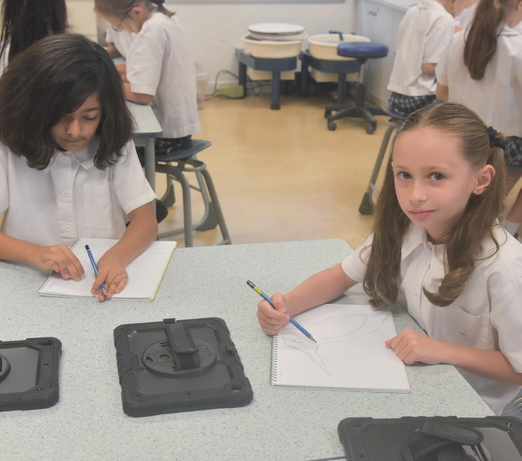 distractions from excessive details. Sketching is also a form of visual and kinetic problem solving, much like constructing a LEGO model. The Year 4 students observed an object and through the sketching, processed the problem, and solved it by analysing how to ‘build’ it through connecting shapes and lines.