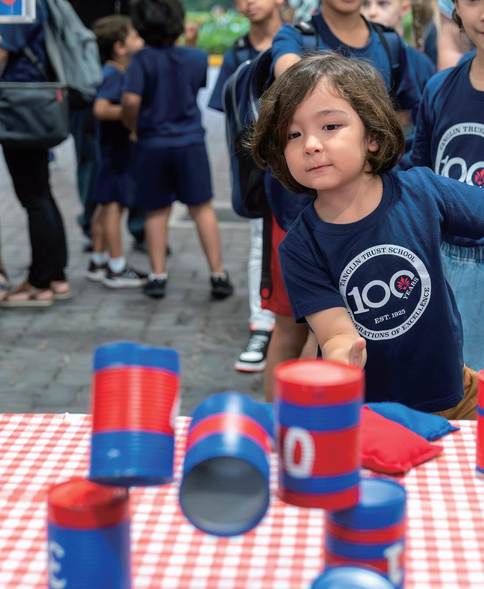 I grew up in Devon, in Southwest England. My first international post was in Australia followed by the last 14 years in Singapore. Prior to joining Tanglin, I was Head of Physical and Health Education at another international school. I was drawn to Tanglin because of its values and emphasis on providing a wellrounded education, which closely aligns with my own teaching philosophy and experiences. Additionally, I was excited about the opportunity to be part of our family’s heritage at Tanglin. It holds a special place in our family history because my grandad, Charles Wilson, was one of the first students at Tanglin when it was founded at the Tanglin Club in 1925. This combination of professional alignment and personal connection made the decision to join the school a meaningful and fulfilling choice. In fact, Tanglin has become a family affair for us! My husband (Ross in Senior PE) and two sons are also part of the community, so it’s like having a family gathering whenever we cross paths on campus. When I think of “Generations of Excellence”, I see it as a reflection of Tanglin’s deep-rooted tradition of educational excellence and its lasting impact on students and the wider community. It signifies a commitment to maintain and advance this tradition, ensuring that excellence remains at the heart of the school’s mission as it continues to grow. As a Junior School PE teacher, I have a front-row seat to the best show on earth. Every day is filled with laughter, excitement, and the joy of helping children discover the fun in learning, being active, and becoming great movers. I love seeing the progress that children make and watching them overcome their fears or challenges. We live in a colonialstyle, black-and-white house that’s around 100 years old, but we can see modern skyscrapers in the distance. This blend of historic charm with contemporary cityscapes perfectly captures the essence of “old meets new.”