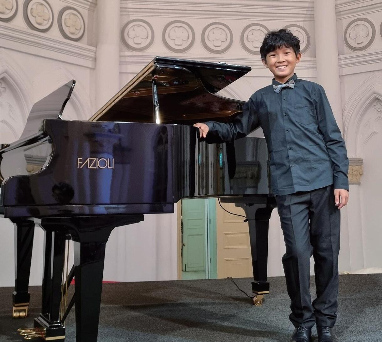 Left: Phantom’s Shining Stars – Grace & Harry; Top right: Harry was an avid performer as a Tanglin student; Bottom right: Harry’s Year 7 class photo