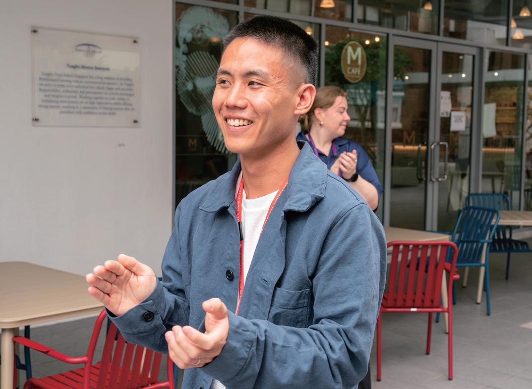 As one of the Lead Students, Nishka values the diversity of perspectives, backgrounds, and experiences within the team. While she recognises the challenge of balancing different viewpoints, she aims to approach initiatives thoughtfully, communicate openly, and work collaboratively with her team to achieve the best outcomes. In particular, she looks forward to working with both her vertical and horizontal teams to develop ideas and lead projects that leave a lasting impact. Nishka also hopes to be an approachable point of contact, creating a space where students feel comfortable sharing their ideas and concerns, knowing they will be heard and taken seriously. Arthur, who joined Tanglin in Year 4, is equally passionate about serving the Tanglin community. Like Nishka, his role focuses on representing his peers’ views and ensuring their voices are heard. This involves keeping communication channels open through assemblies, surveys and even oneon-one conversations with students who have concerns or questions. “This year, our collective goal is to strengthen our community, and I’m especially excited to collaborate with people across the school to enrich the student experience at Tanglin,” Arthur said.
