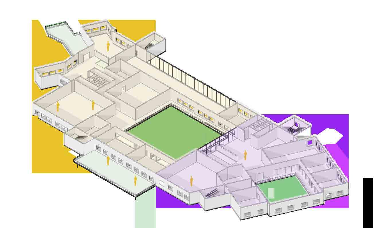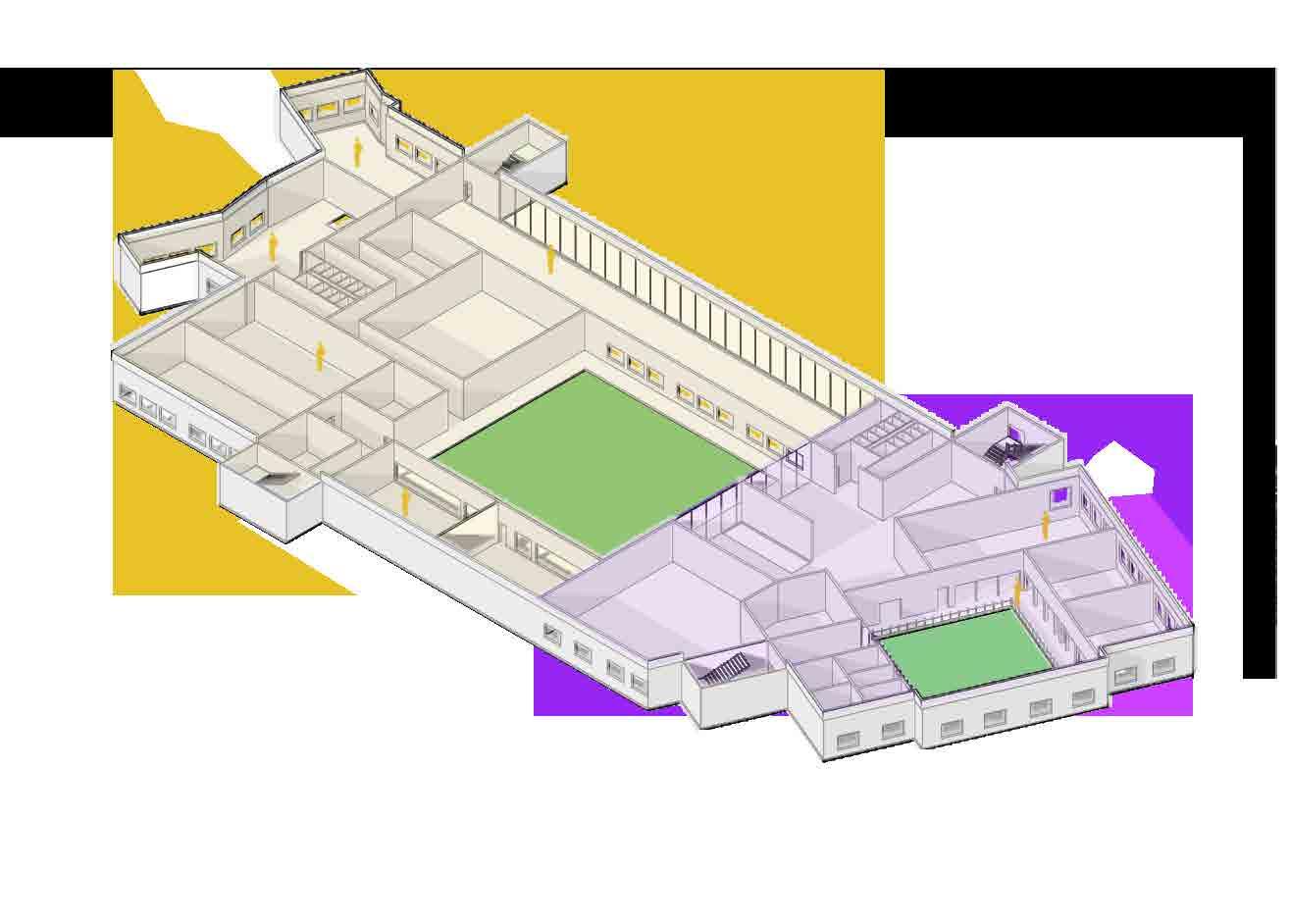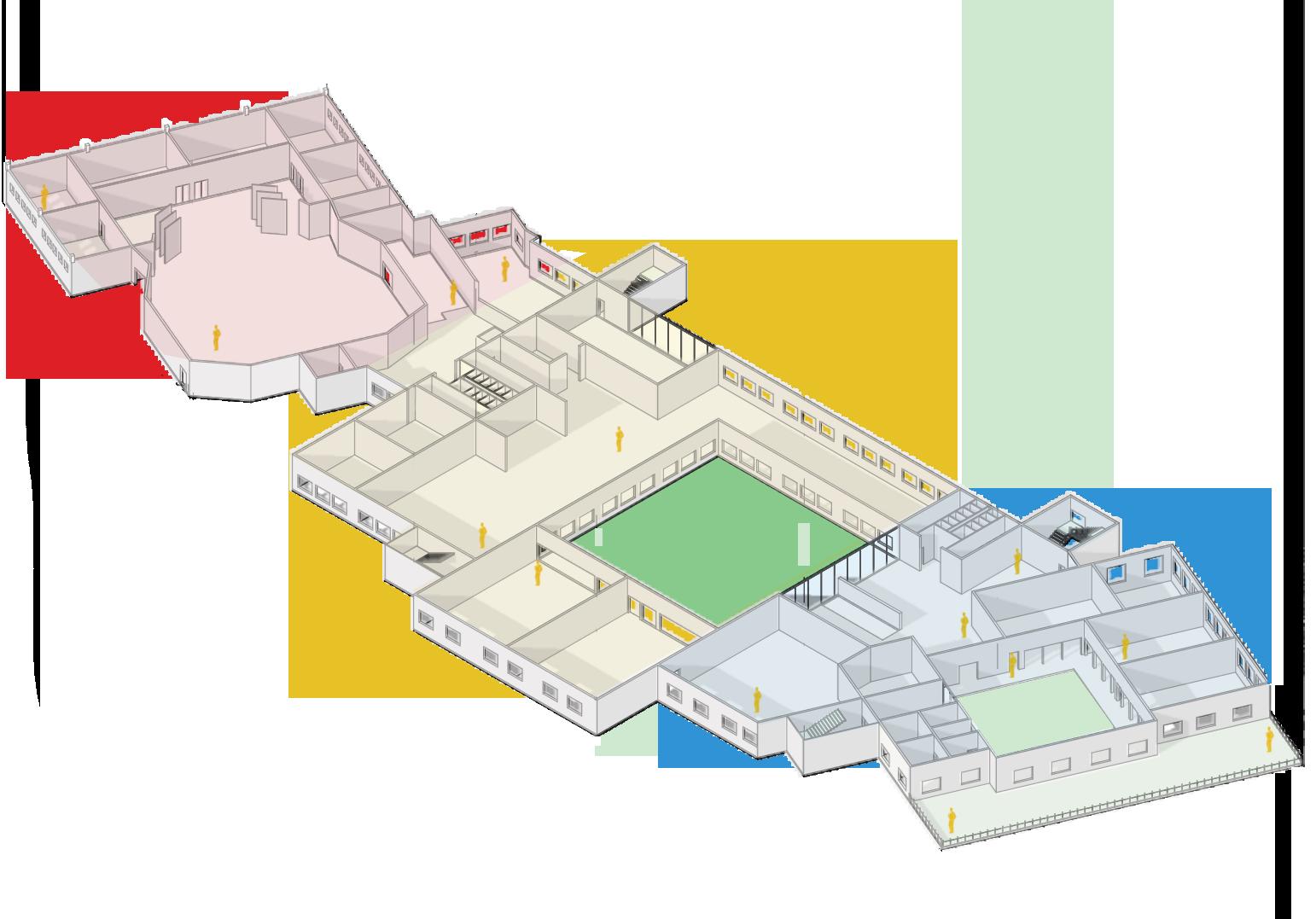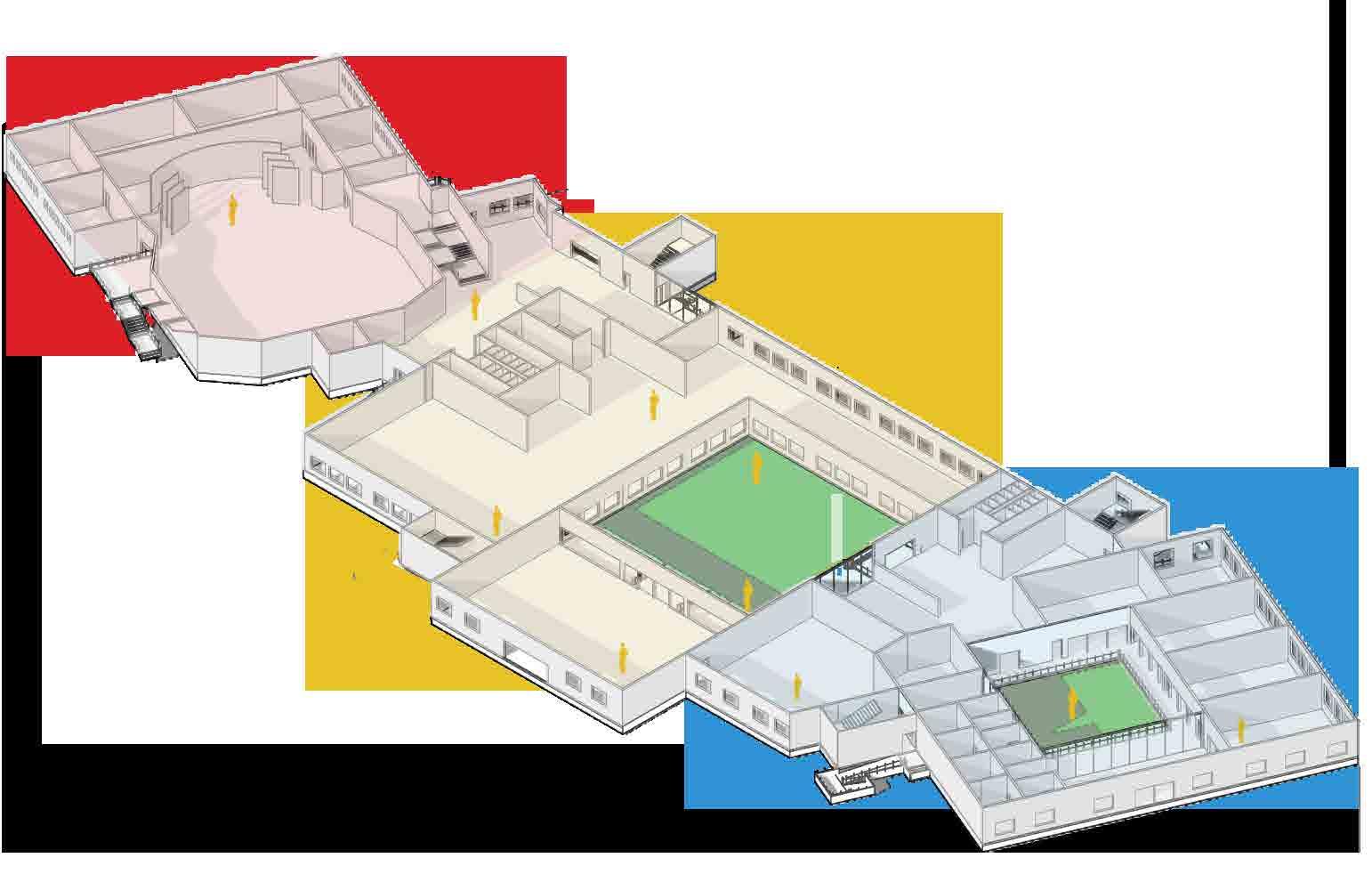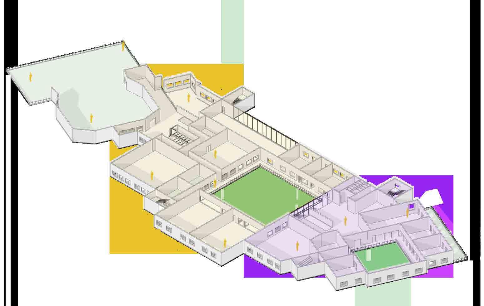 Workshops connecting to open grounds from the building