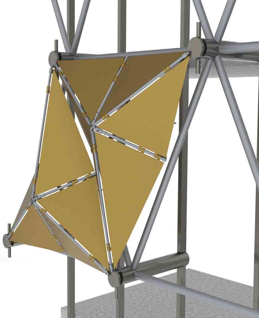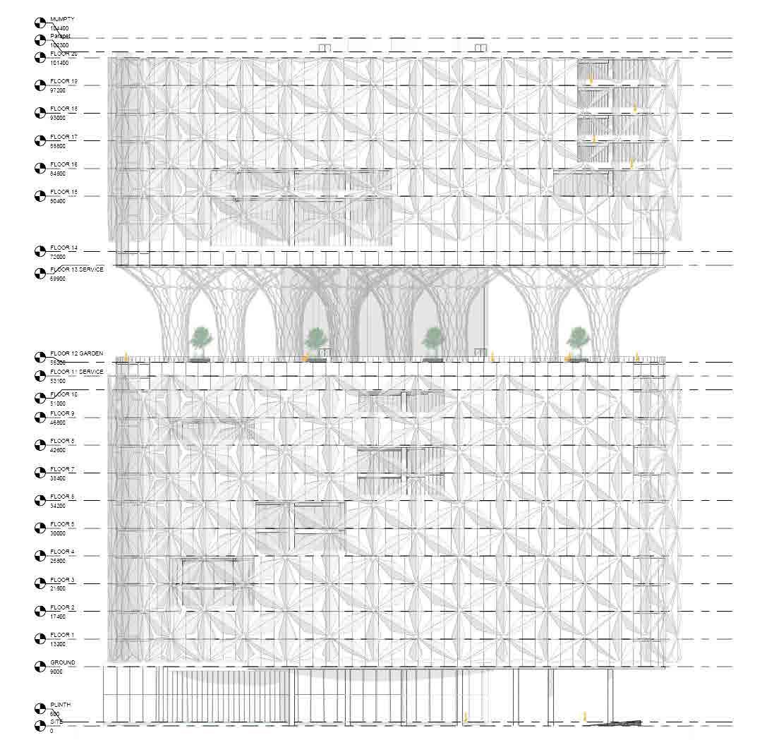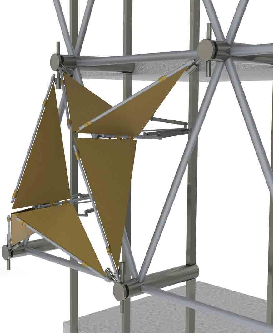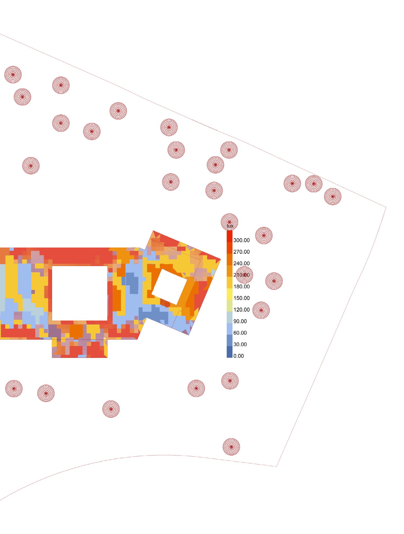 and simulated on Grasshopper, it is designed to respond to the movement rays recede. When simulated for solar heat gain, along with the curved provides a dynamic and ever-changing aesthetic, reflecting the city’s