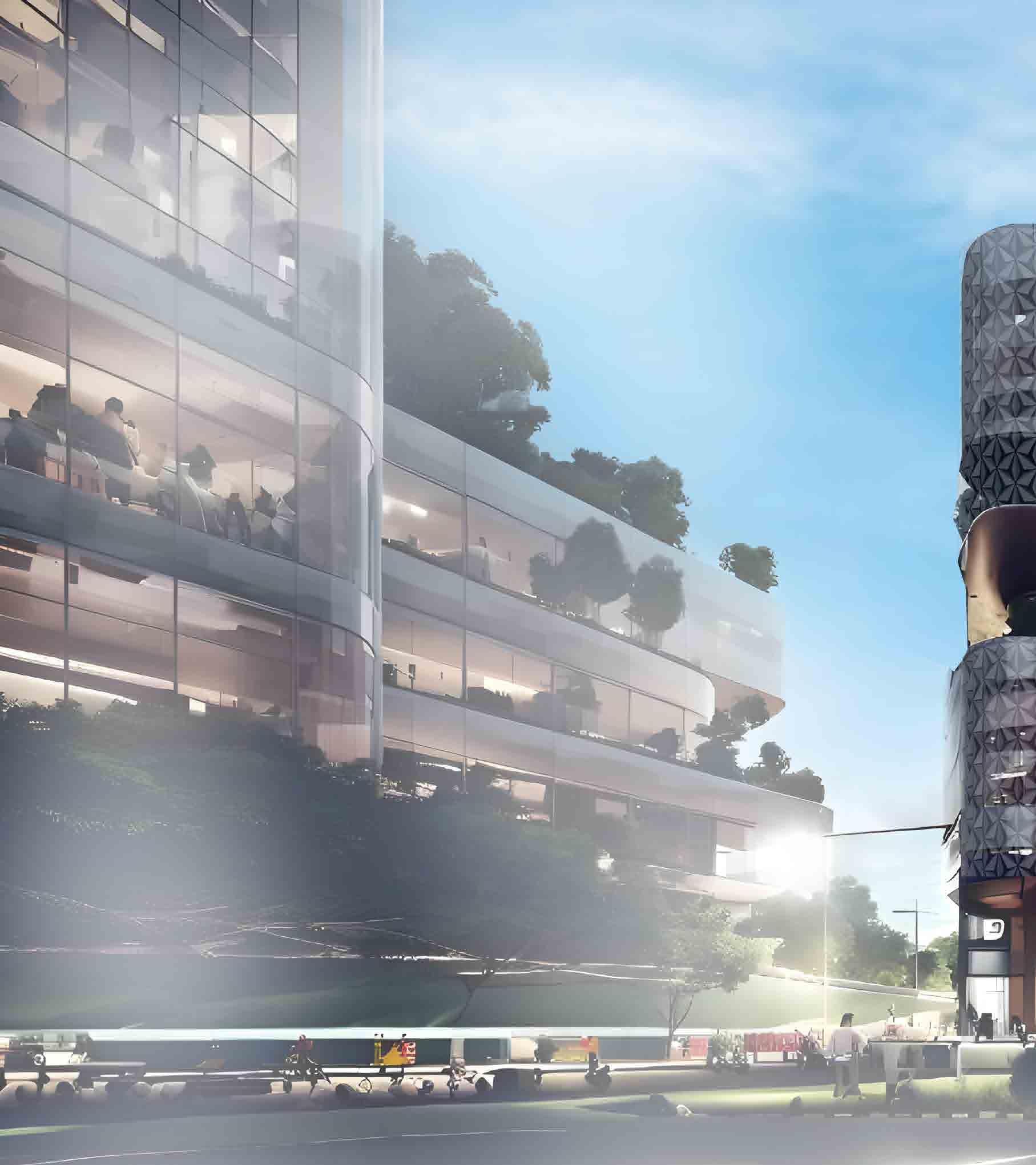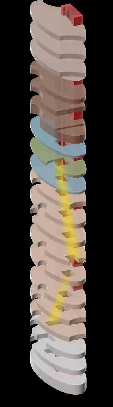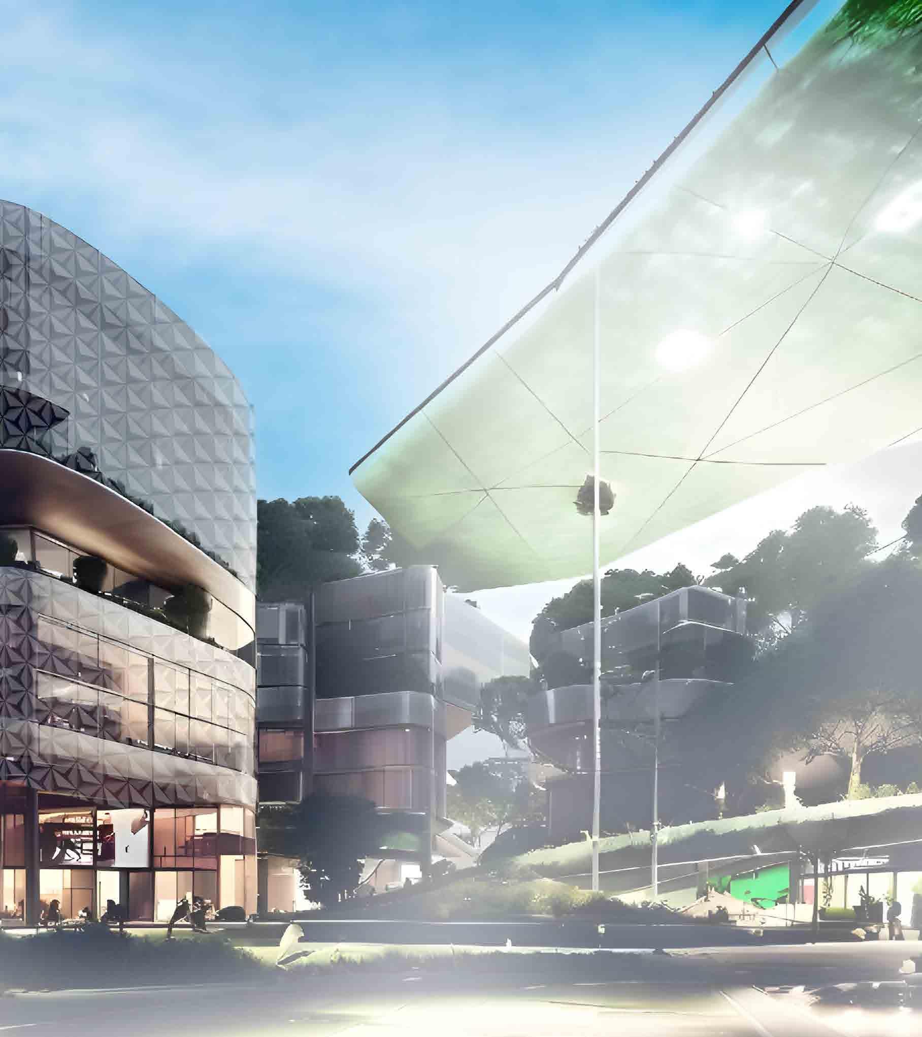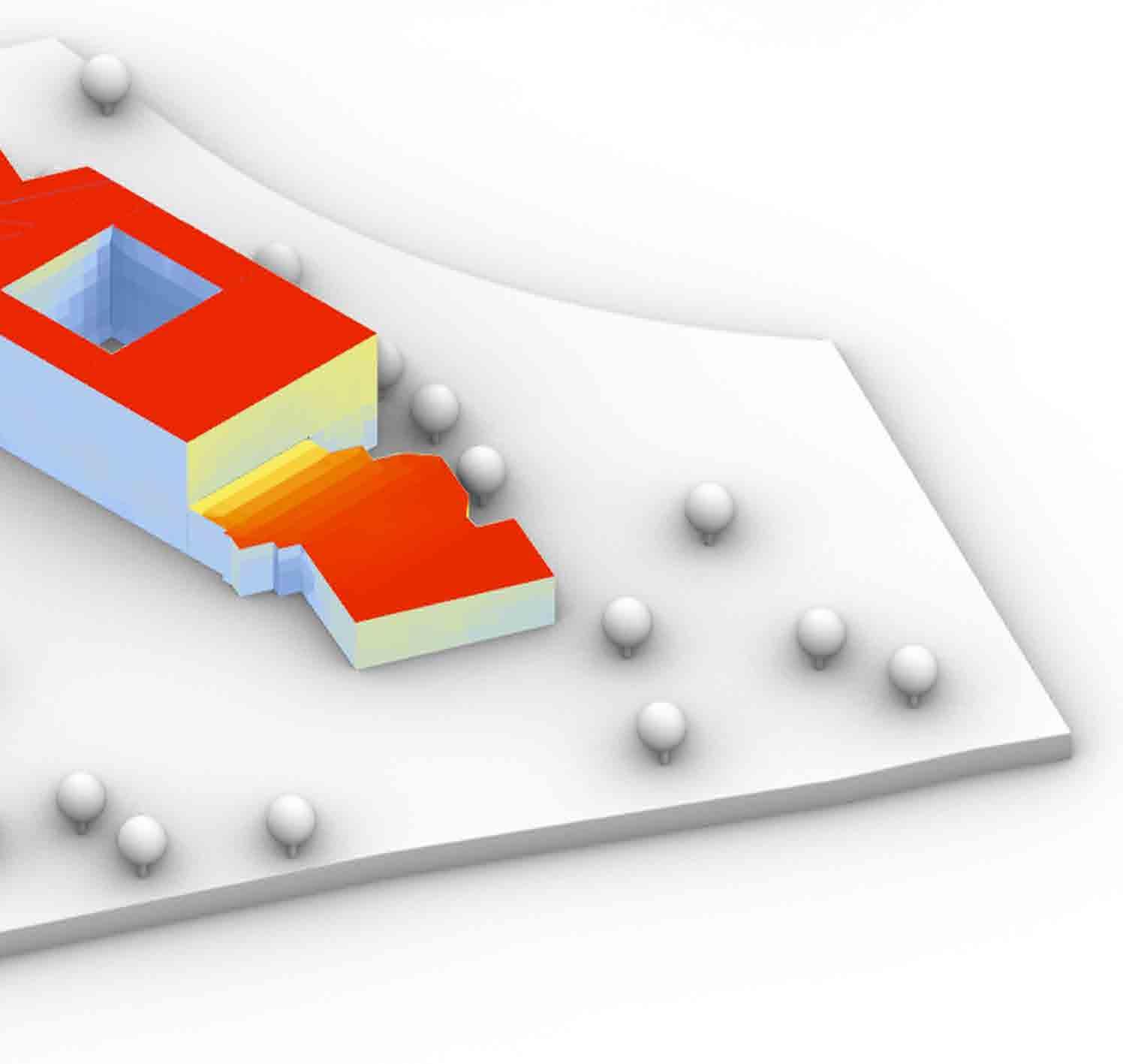 and simulated on Grasshopper, it is designed to respond to the movement rays recede. When simulated for solar heat gain, along with the curved provides a dynamic and ever-changing aesthetic, reflecting the city’s