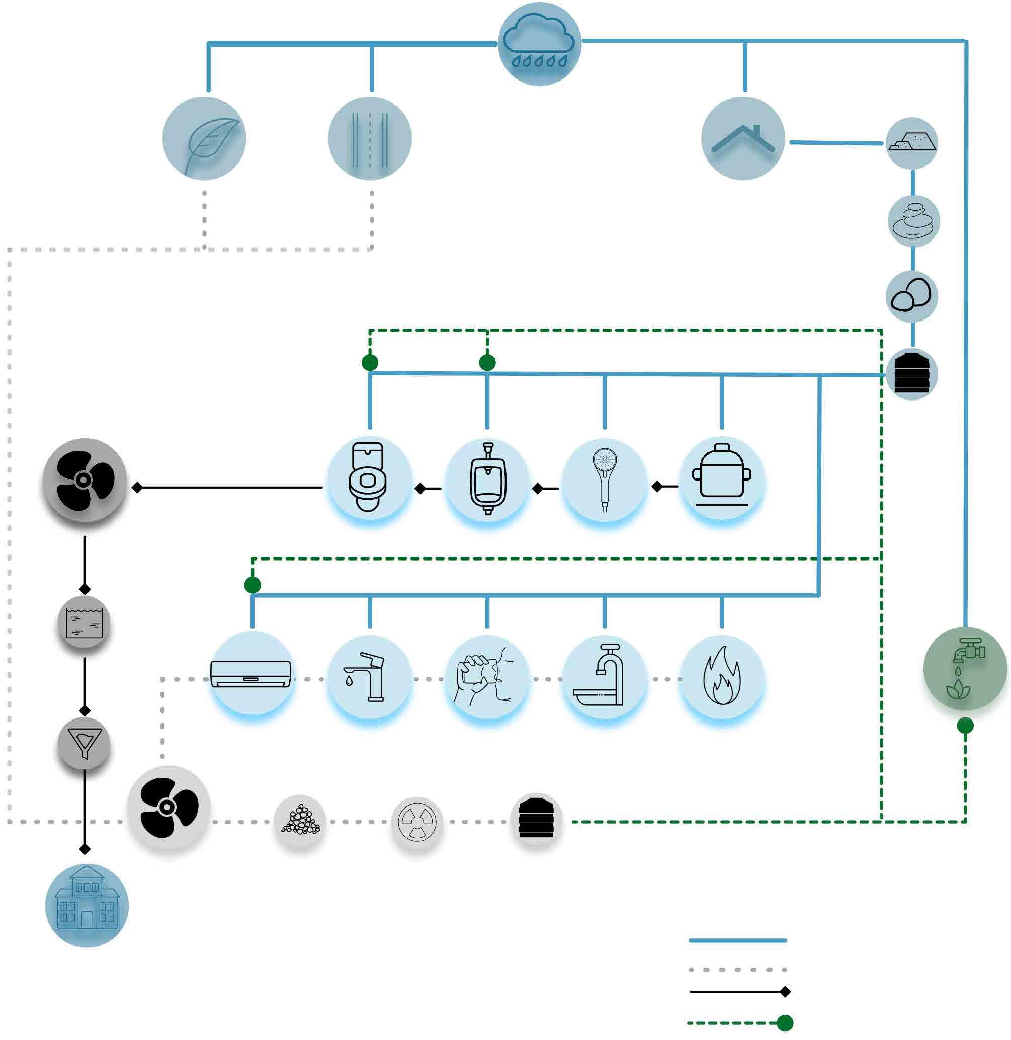 In this design we achieved a net-positive water balance. Our strategy included year-round rainwater harvesting, the implementation of a Soil Biotechnology System (SBT) to treat wastewater, and the incorporation of drip irrigation systems. These initiatives, coupled with the use of indigenous plant species, allowed us to fulfil all water demands while maintaining surplus reserves for emergency situations.