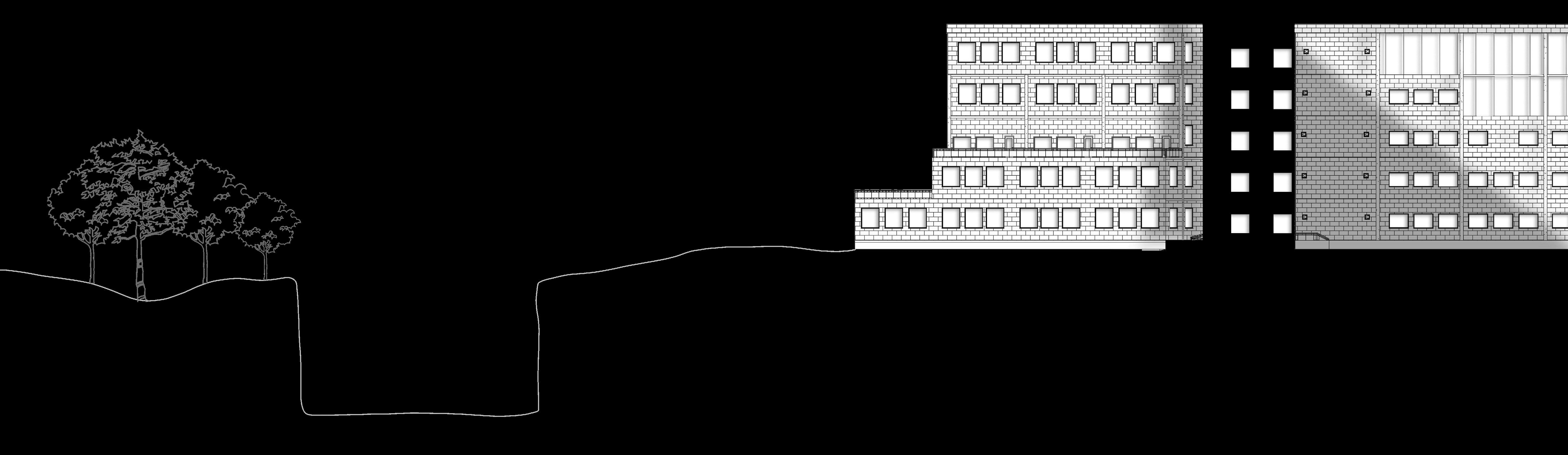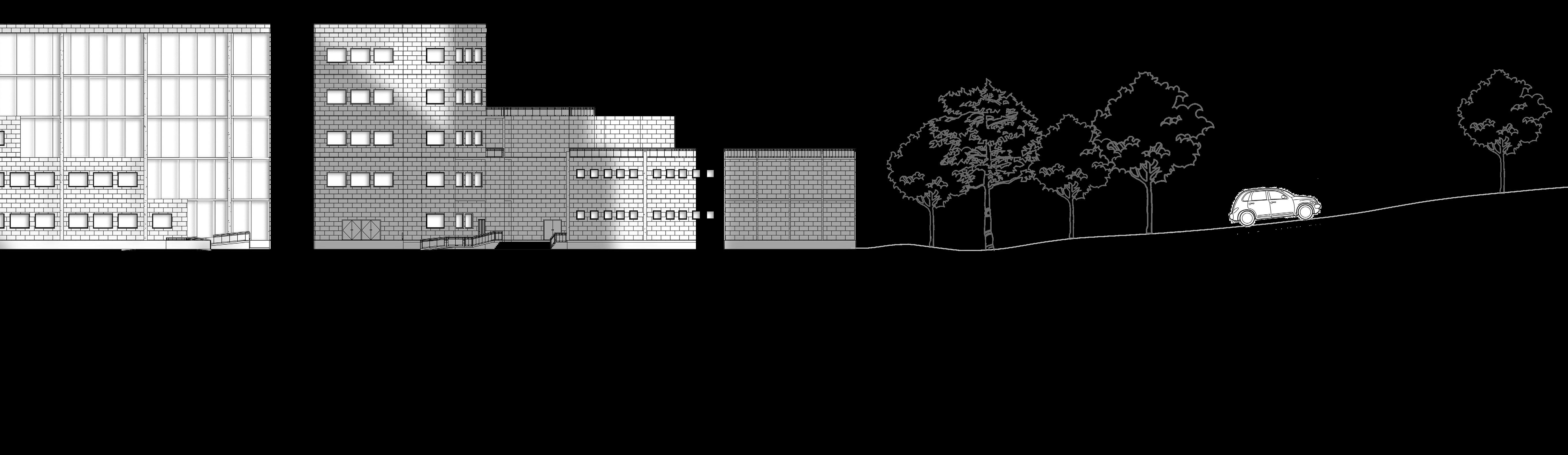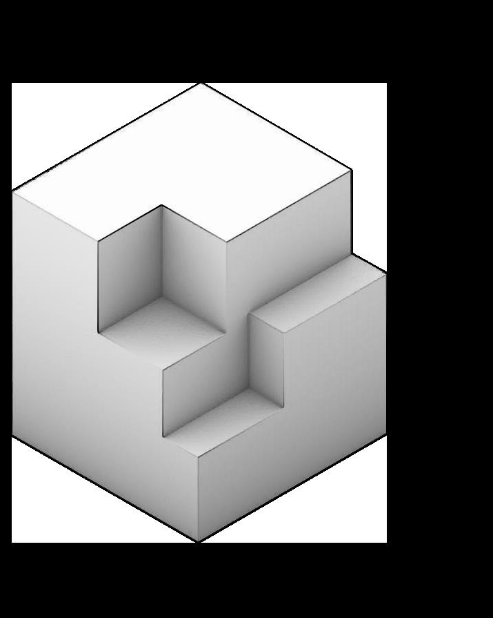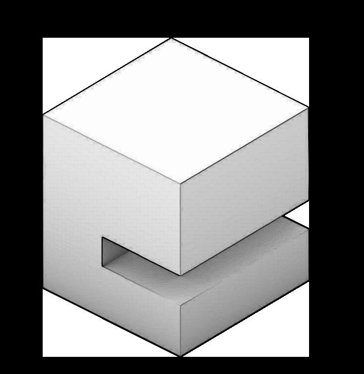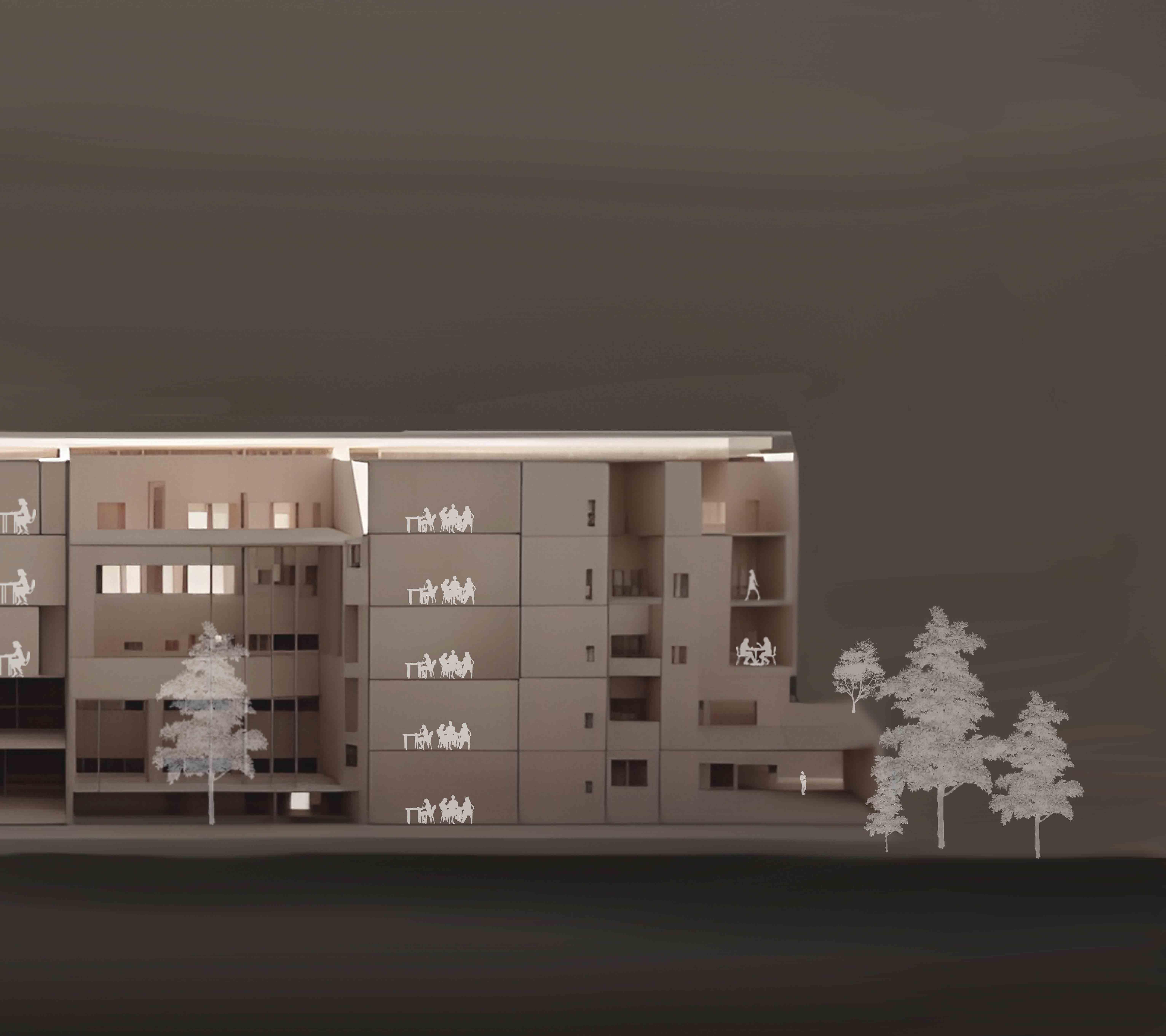 Shows the play of light through staggered atrium
