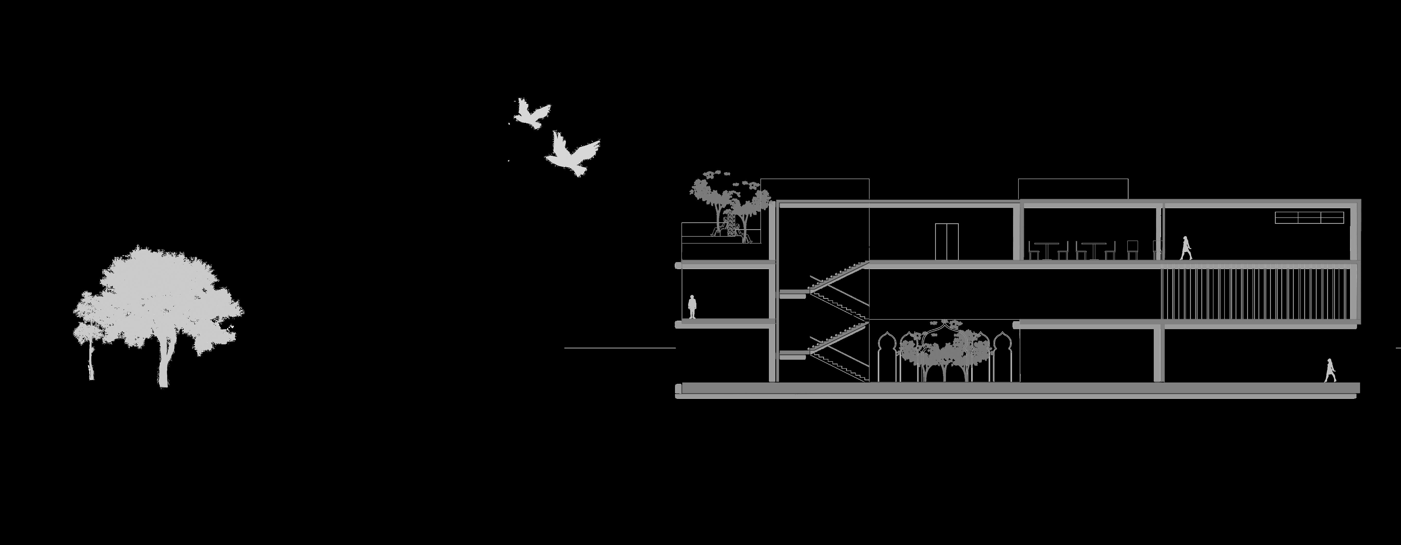 This museum was designed as an invitation to uncover the layers of Delhi’s past, reimagined for the future. This render captures the magnificent entry of huge arches while also encapsulating the intertwine of lush trees and multilevel terraces, blurring the boundaries between nature and structure.