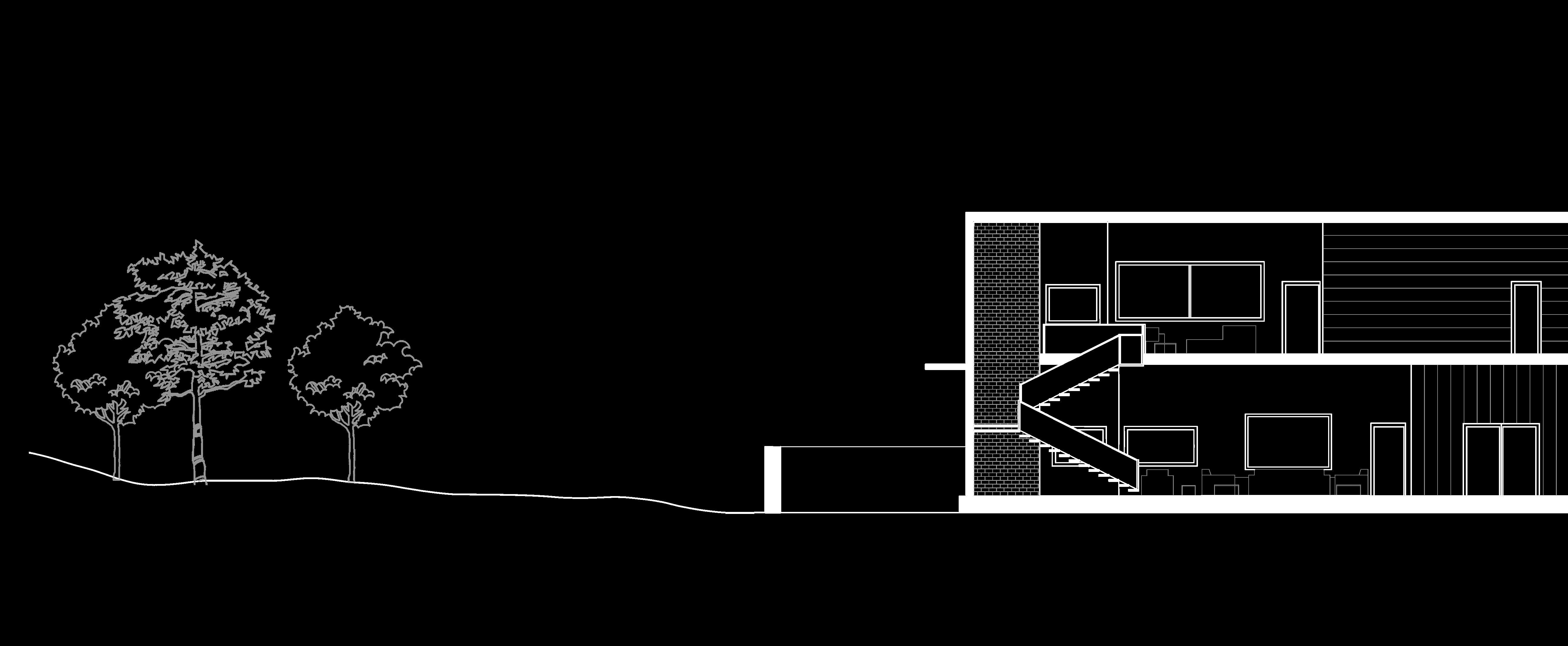 Shows facade, and garden that increases interaction with nature