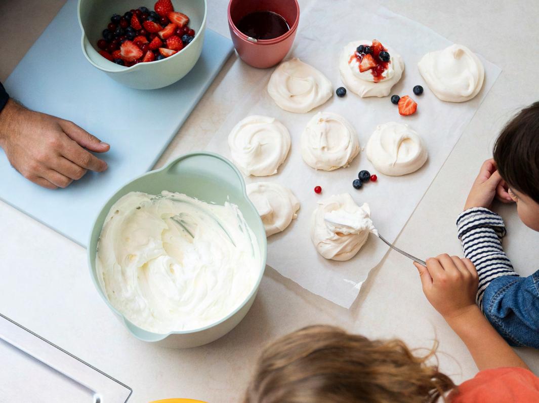 "There's something so playful about cooking and baking," says our designer Marleen, smiling. "You're working with your hands, feeling the ingredients, stirring, scooping, rolling, kneading... I wanted to capture that sense of playfulness in the design of these products. I started with the mixing bowl. It's a cheerful, chunky little kitchen helper that's soft to the touch and nice to hold."