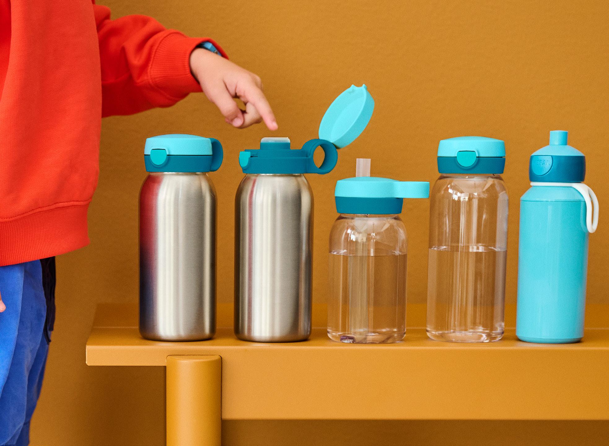 Enfants : quatre nouvelles gourdes et une boîte à goûter, également disponibles en acier inoxydable. Notre collection Campus, toujours aussi robuste, reste une référence en matière de praticité et de résistance.
