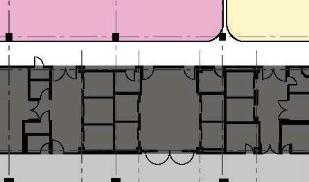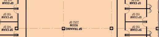 Whereas the previous test fits separated the SIM and SP suites on a North/South axis, this scheme divides them on the East/West axis, prioritizing longer runs of SP suites that would require fewer proctors and enable running all 24 rooms simultaneously.