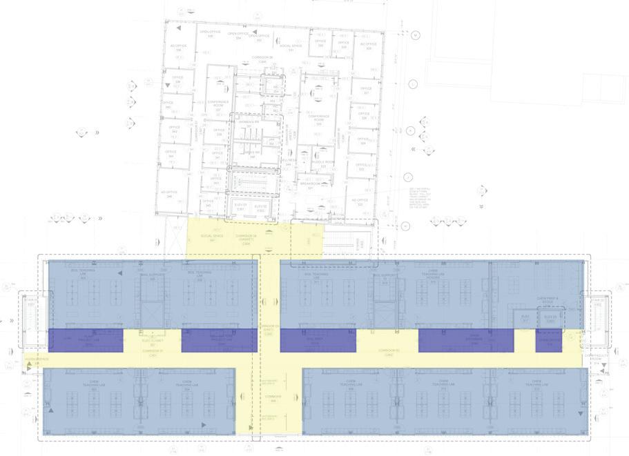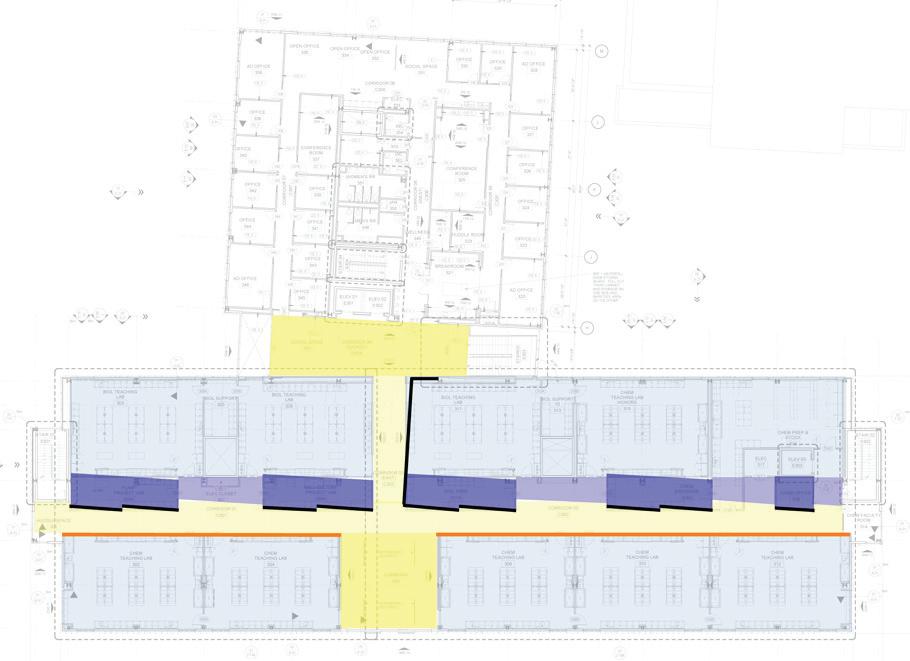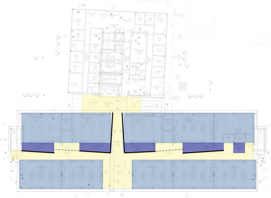 Enlarged final floor plan with ‘Rotated Flakes’. Rotated biology prep lab highlighted in blue.