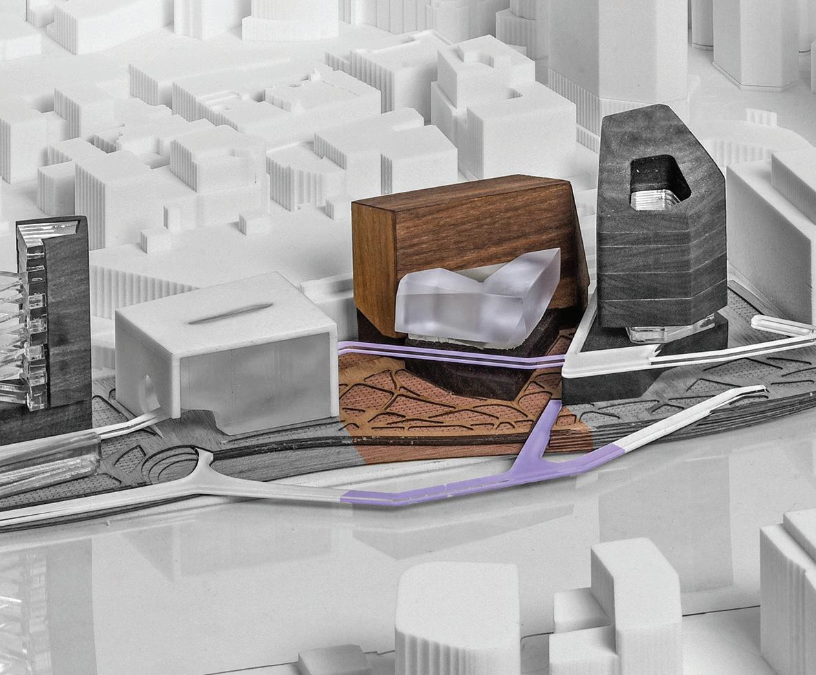 Teaching lab wall design. Payette, Boston Medical school fit-out. Payette, Boston. Ragon facade model. Payette, Boston.