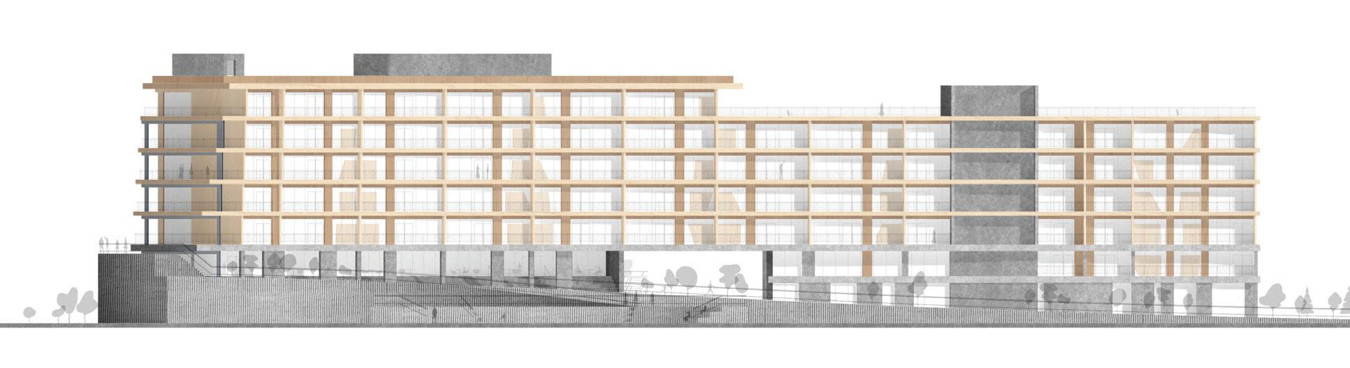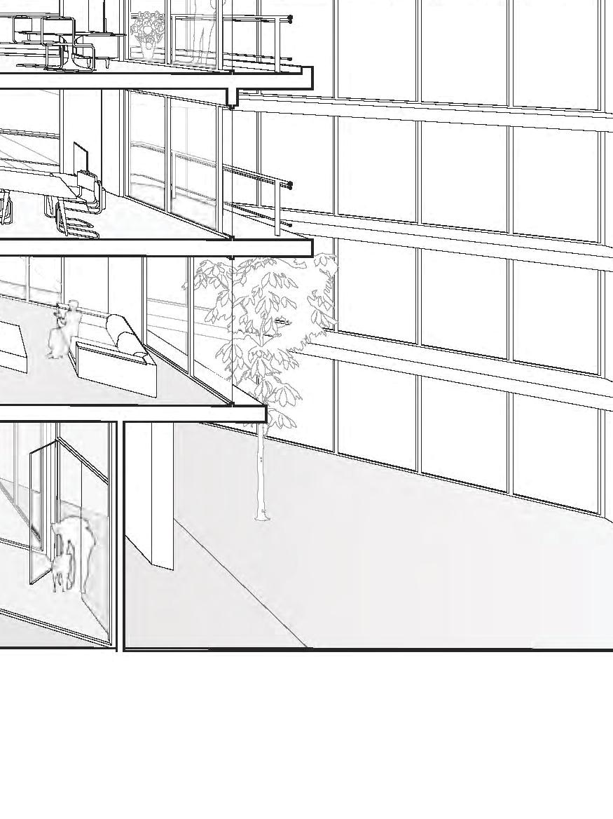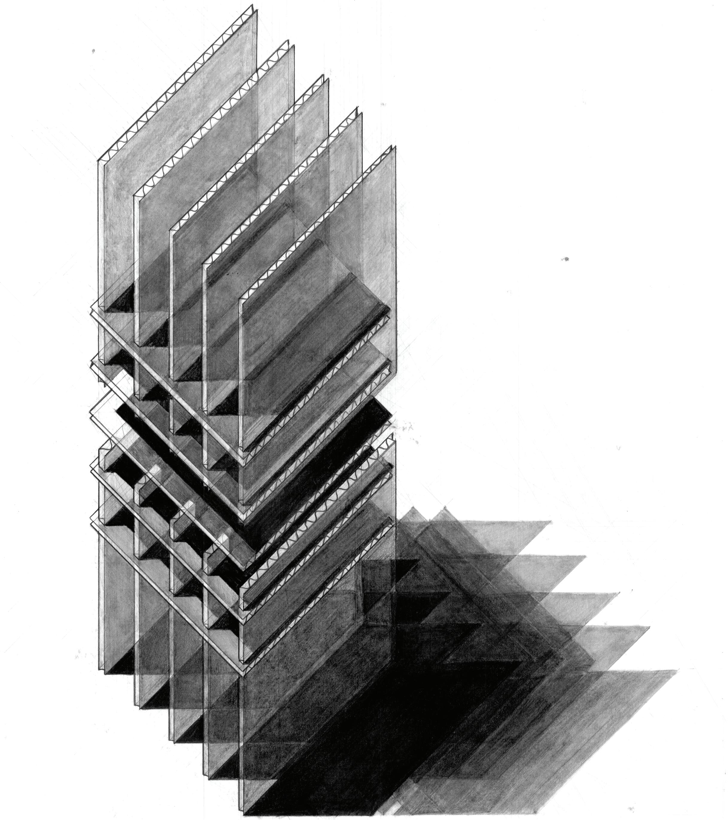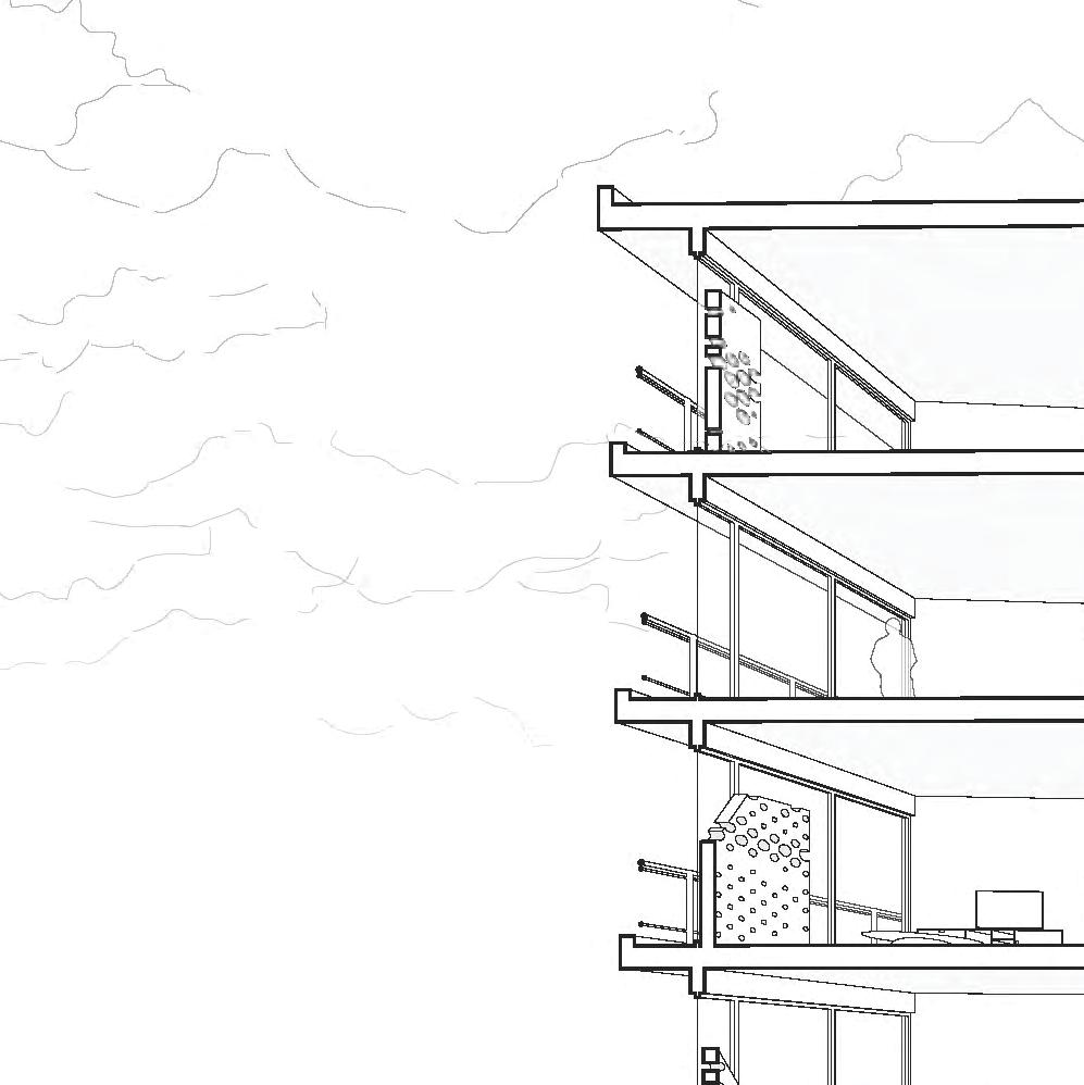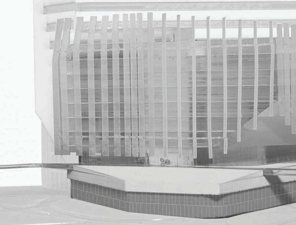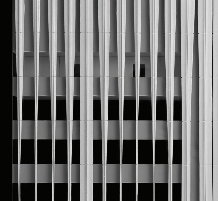 Vertical glass fins with varying rhythm obscure the floor plates, allowing one to readthe form of the whole rather than layering of levels. Additionally providing thermal comfort to the users.