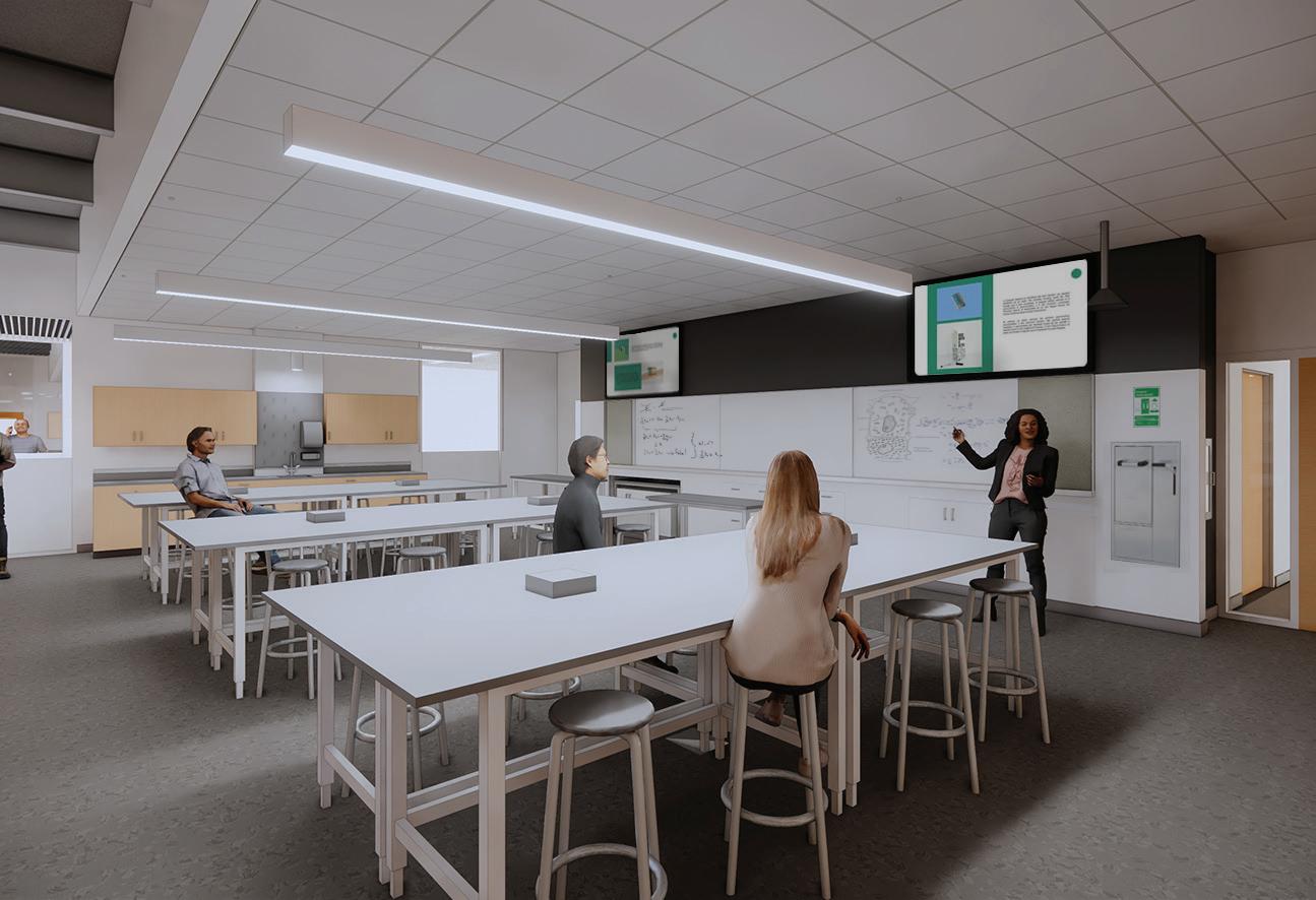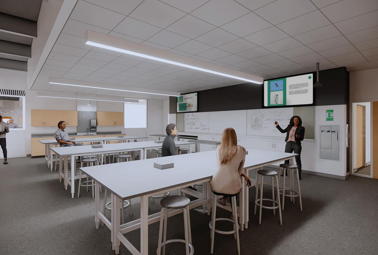 Rendering of typical biology teaching lab with final teaching lab wall design.
