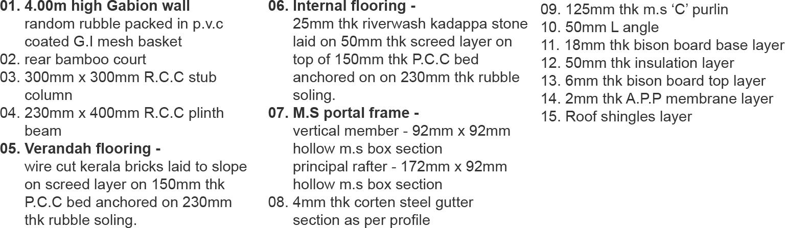 3. Traditional shaded verandah spaces tie the two main rectangular volumes and the ‘gabion’ walls thus forming the entire construct of the house.