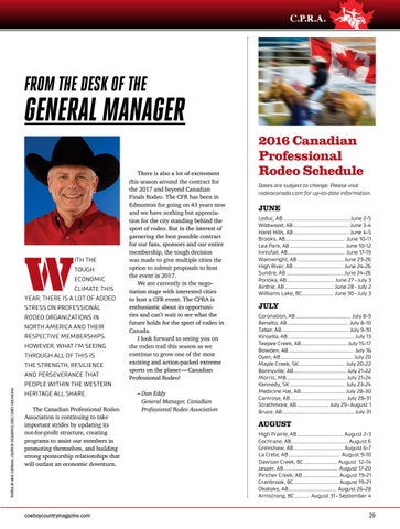 2016 Canadian Professional Rodeo Schedule Dates are subject to change. Please visit rodeocanada.com for up-to-date information.
