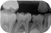 Pasienten har fortsatt en aktiv karies tilstand, men SDF har bremset utviklingenen av karies, og det forventes nå en helt naturlig tannfelling i regionene 05- og 04, uten ytterligere komplikasjoner.