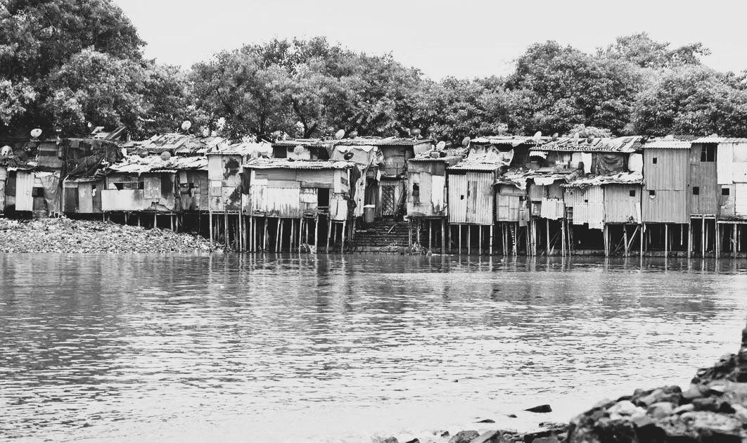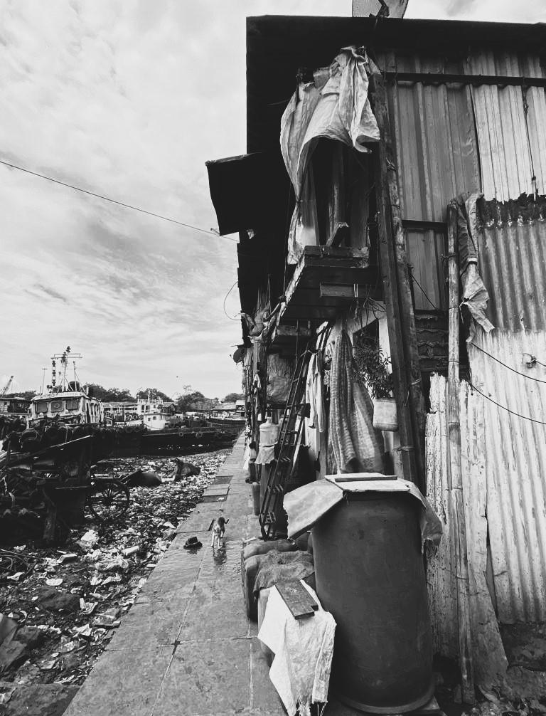 The settlements that exist on the edge of the Bunder extend out into the water over stilts- makeshift timber or bamboo poles under tin walls and a tin roof, often going two storeys tall. Survival is the motivating factor for building over water where insecurity of demolition and resttlement is paramount.