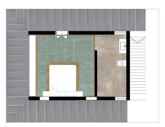 The home has four levels to it which merge into one another. The ground level is the most public space and as one goes higher the degree of publicness reduces. The external facade has recessed seating and as one enters there are multiple niches forming raincoat racks , a mandir and shoe storage. A dining space is carved within the wall. A visual connection is established between the person sitting on the staircase and people passing in the courtyard. The second level becomes a private space and consists of two sleeping spaces divided by a semi transparent screen.