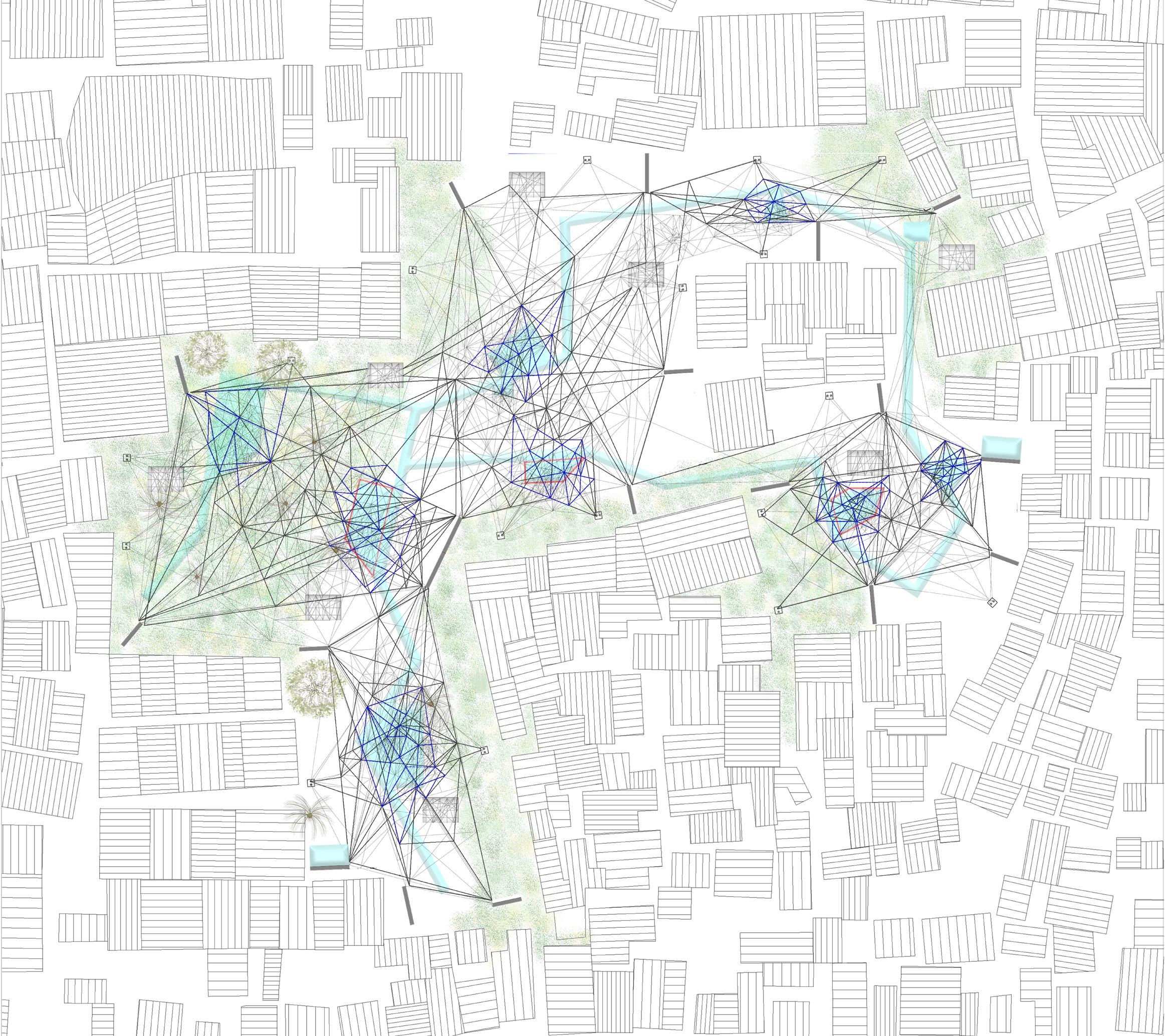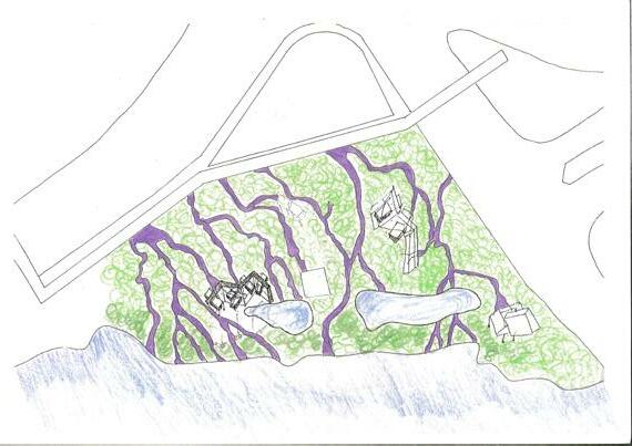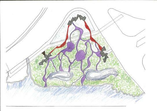 INTER-RELATING river tributary system and human trails to accommodate the programs