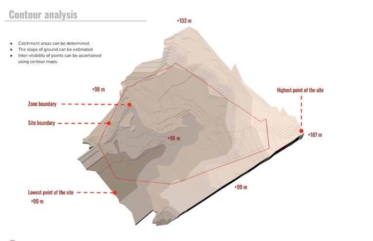The building sits at the edge for protecting the wetland making it MONUMENTAL Looking at the GEOMETRY of how the buildings can be placed and access points as per the catchment areas.