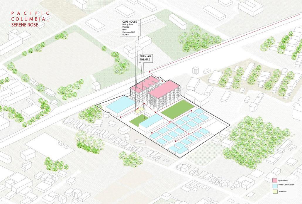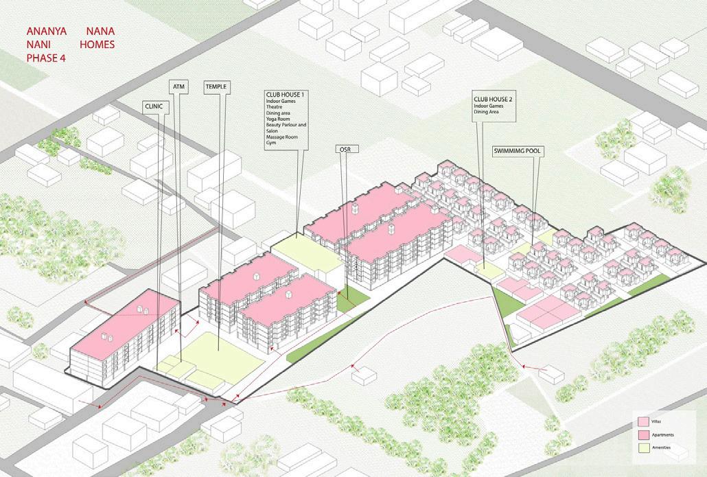 What is the architecture of the new emerging housing that is sensitive to the programmatic and spatial demands of Retirement Communities, and how can old age be integrated within it. The site of intervention chosen was the Lakshmi Mill colony, where majority of the population residing are elderly throughout the day, and younger population being out for work. The mill colony is being made pedestrian friendly considering the slowing speed of people with increasing age. The back lanes of houses have been cleared up to make pedestrian access routes that open up with smaller gathering spaces, whereas the front roads remain to be accessible by vehicles. The programs, along with old age friendly housing have been generated considering to keep people engaged throughout the day, not only within them, but with the community as well.